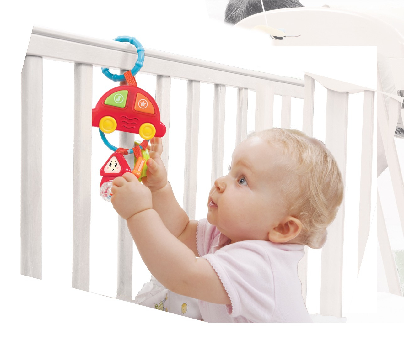 Zornaitoare masinuta muzicala cu 3 chei, special conceputa pentru a stimula simturile bebelusilor si a le oferi ore intregi de distractie. Aceasta jucarie inovatoare este realizata din materiale de inalta calitate si este sigura pentru utilizarea de catre cei mici. Masinuta muzicala include un inel usor de atasat la carucior, patut sau scaun auto, facand-o ideala pentru calatorii si plimbari. Inelul muzical pentru chei de masina vine cu 3 chei de activitati diferite: Cheie cu stea rotativa, care se invarte usor, captand atentia bebelusului. Cheie texturata, care ofera o experienta tactila variata, ajutand la dezvoltarea simtului tactil. Cheie cu margele rotative, care emite sunete placute atunci cand este agitata, stimuland auzul si coordonarea mana-ochi. Melodiile distractive si efectele sonore sunt activate usor, incurajand bebelusii sa exploreze si sa invete prin joaca. Zornaitoarea are butoane mari si usor de apasat, perfecte pentru mainile mici ale bebelusilor. Recomandata pentru copiii cu varsta de cel putin 3 luni.
