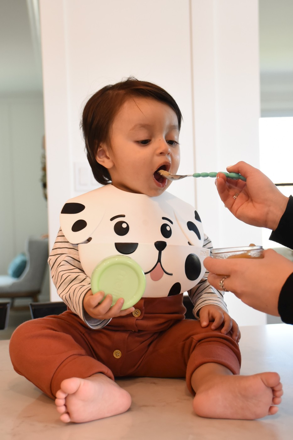 Baveta silicon Animal, Melii, catel Transformati timpul de masa al micutului dumneavoastra cu Baveta noastra Melii din silicon model animale – catel! Va asigurati astfel ca masa va deveni nu doar placuta, ci si fara de mizerie! Aceasta baveta jucausa, cu designuri de animale simpatice, este rezistenta la apa si adauga un element distractiv in timpul hranirii. Confectionata din silicon moale de inalta calitate, 100% silicon alimentar, este durabila, flexibila, usoara, usor de curatat si sigura pentru a fi asezata in partea de sus a masinii de spalat vase. Îmbogateste experienta meselor pentru copiii de toate varstele cu Bavetele noastre Melii din Silicon cu model Animale! Permite-le celor mici sa se bucure de mancarea lor intr-un stil adorabil, asigurand in acelasi timp o experienta curata si fara mizerie. CARACTERISTICI PRODUS 100% silicon alimentar de inalta calitate, fara BPA, plumb, cadmiu, PVC. buzunar frontal pentru colectarea hranei sistem usor de ajustare si inchidere pe nasturi la gat vesel si atragator pentru copii se poate spala in masina de spalat vase si fierbe pana la 230C