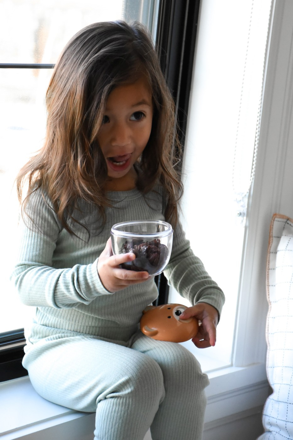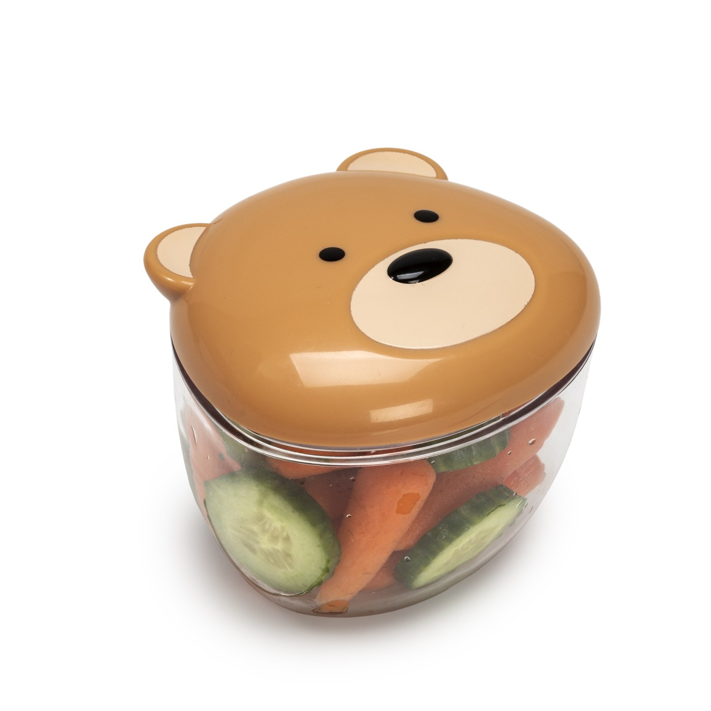 Recipient hrana bebe, Melii, model urs Cu recipientele de gustari in forma de animale Melii, copiii pot transporta si depozita gustarile intr-un mod adorabil! Acest recipient de mancare cu capac urs, de dimensiuni potrivite pentru copii, face gustarile distractive si are, in acelasi timp, un capac ermetic si antipicurare pentru a preveni mizeriile. Recipientul de hrana bebe, Melii, model urs este fabricat dintr-un corp durabil si transparent pentru a evalua usor cat de plin este recipientul, iar design-ul faciliteaza deschiderea si inchiderea. Disponibile in 6 modele amuzante cu animale, aceste recipiente pentru gustari sunt perfecte acasa, in miscare in geanta pentru scutece si chiar pentru gustari portionate intr-o cutie de pranz! CARACTERISTICI PRODUS Capac ermetic si antipicurare pentru a preveni mizeriile Durabil si usor Usor de curatat si sigur in masina de spalat vase pe raftul superior Fara BPA, plumb, PVC, cadmiu, ftalati Capacitate de 232 ml/7.84 fl oz