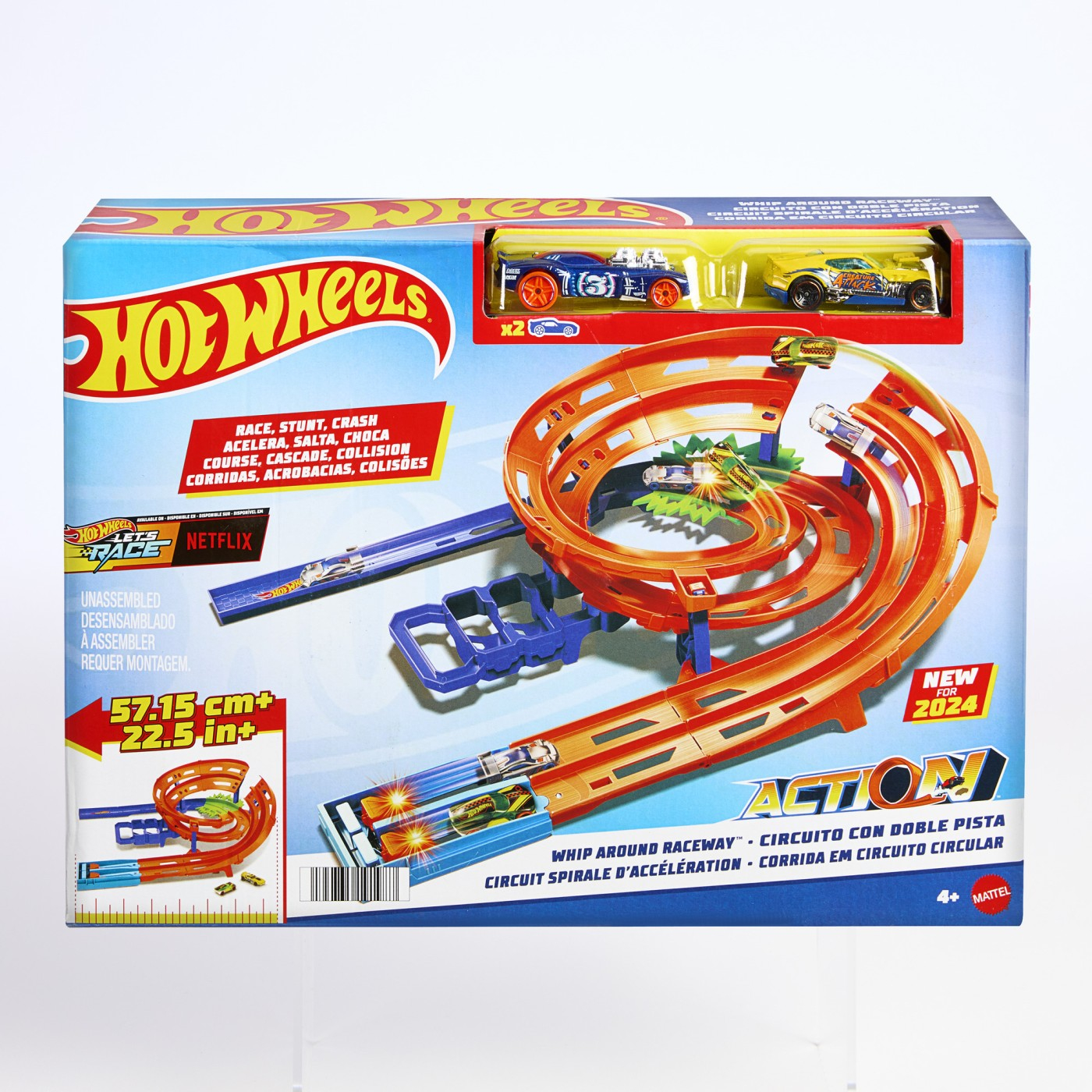 Concureaza cu doua masini Hot Wheels pe piste una langa alta, efectueaza sarituri de cascadori si scapa din zona de coliziune pentru a fi primul care termina circuitul, aceasta pista reuneste toata actiunea si distractia curselor si cascadoriilor. Include, de asemenea, doua vehicule la scara 1:64.
