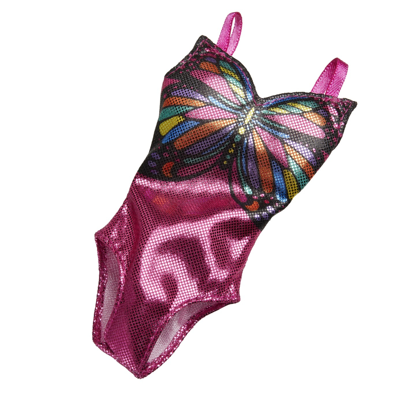 Gata de calatorie cu masina sau avionul. O valiza draguta, castile, o masca de fata si un accesoriu pentru smartphone sunt elementele esentiale perfecte pentru calatorie. Papusa Barbie este gata in costumul ei de baie stralucitor cu tematica fluture, palaria de soare, papucii elegante, ochelarii de soare si lotiunea de soare.