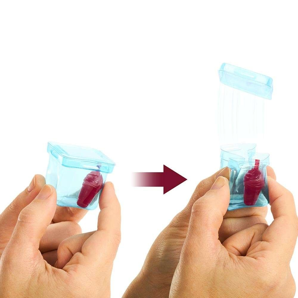 Cu 8 surprize intr-un singur pachet, papusile din seria Barbie Pop Reveal Fruit ofera o experienta senzoriala de despachetare cu distractie pe tema fructelor! Copiii indeparteaza stratul exterior al ambalajului, deschid paharul si scot pungile cu surprize. Apoi insurubeaza capacul la loc si sparg capacul cu piesa asemanatoare unui pai pentru a elibera Slime rosu si pufos peste cuburile de gheata! Desfaceti cutia pentru a gasi o papusa Barbie cu aroma de pepene verde si pozabila, un catelus de companie moale si parfumat si accesorii care se potrivesc cu tema aromei de fructe! Papusa Barbie are parul lung si rosu si vine cu pantaloni scurti cu tematica de fructe si un animal de companie squishy parfumat asortat pentru distractie de povestit!