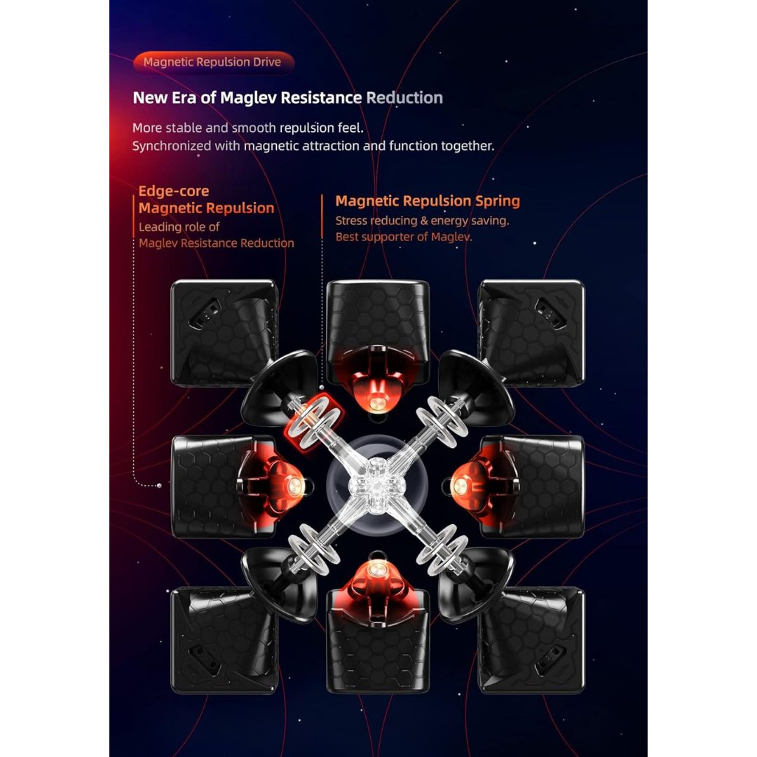 Cubul GAN13 Maglev este varful inovatiei in tehnologia cuburilor de viteza, conceput pentru cei care cauta perfectiunea in fiecare miscare. Acest cub avansat 3x3 introduce functii revolutionare care imbunatatesc atat viteza, cat si controlul, stabilind un nou standard pentru cuburile magnetice. Experimenteaza rotiri aproape fara frecare datorita tehnologiei maglev, unde respingerea magnetica creeaza un strat exterior ce „leviteaza”. Acest lucru reduce semnificativ rezistenta, oferind o experienta de rotire lina si fara efort. Sistemul magnetic de baza aliniaza automat fiecare strat cu precizie, permitand rezolvari mai rapide si mai exacte. Alinierea de 30°+ asigura faptul ca fiecare miscare se incadreaza perfect, reducand necesitatea ajustarilor manuale. Cu pozitionarea centrala imbunatatita, GAN13 Maglev introduce magneti de margine care duc respingerea magnetica la un nou nivel. Cubul este complet integrat cu 88 de magneti plasati strategic, asigurand o forta magnetica constanta pe tot parcursul utilizarii. Aceasta acoperire magnetica completa imbunatateste stabilitatea si fluiditatea cubului, facand fiecare rotire sa se simta naturala si controlata. GAN13 Maglev dispune de un sistem sofisticat de reglare numerica, care iti permite sa personalizezi forta magnetilor, tensiunea si distanta de miscare. Cu 216 setari posibile, poti ajusta cubul pentru a se potrivi perfect preferintelor tale. In ciuda faptului ca are cu 40 de magneti mai mult decat modelele anterioare, GAN13 Maglev ramane incredibil de usor, cantarind doar 71g. Acest lucru asigura ca viteza nu este compromisa, oferind o experienta de rezolvare rapida si agila. De ce sa alegi GAN13 Maglev? GAN13 Maglev este conceput pentru cuberii de viteza care cer performante de top. Indiferent daca participi la competitii sau vrei sa-ti depasesti recordurile personale, acest cub ofera precizie, stabilitate si viteza fara egal.