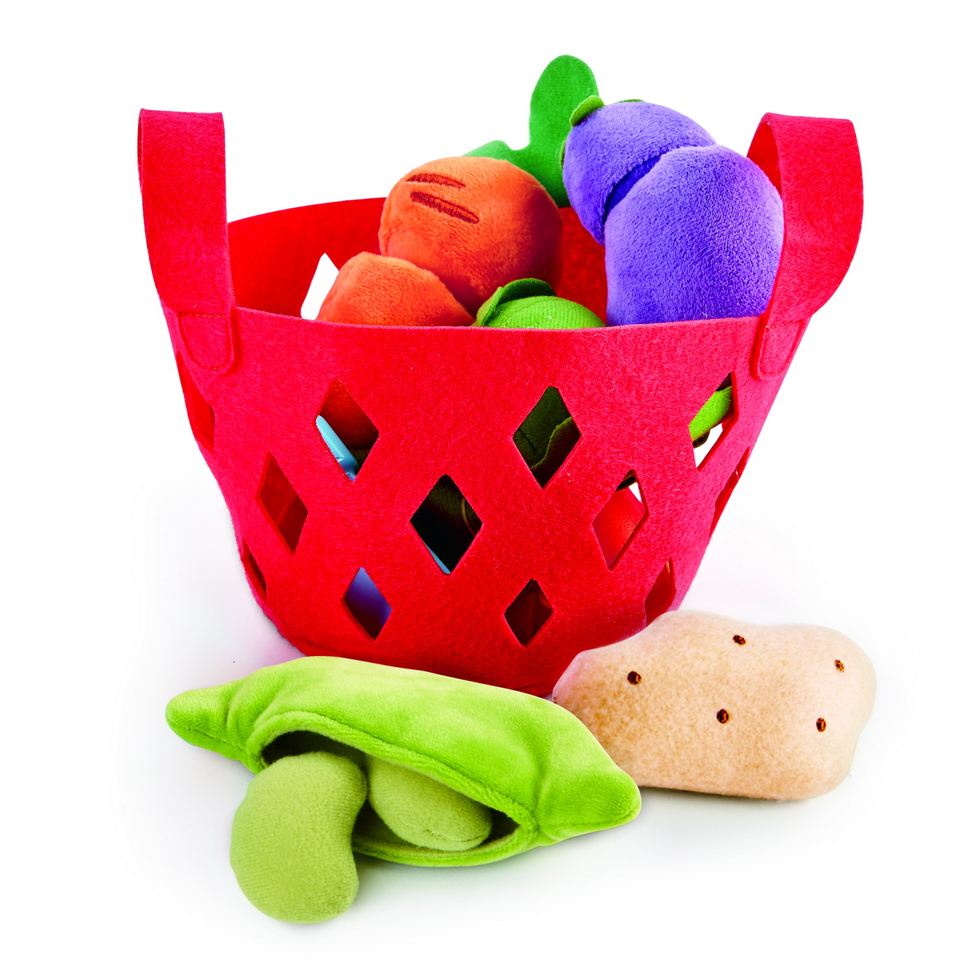 Umple acest cos moale, din fetru, cu sase dintre legumele tale preferate. Scoateti mazarea din pastai, curatati frunzele de varza si taiati morcovul si vinetele in jumatate !. Vine cu un cutit cu un maner gros, din lemn, pentru ca degetele bebelusilor sa le prinda si sa le tina. Cosul din pasla este moale si sigur pentru bebelusi. Include sase legume. Varza are trei frunze detasabile. Pastaia de fasole contine doua boabe de fasole incurajeaza jocul de rol si alimentatia sanatoasa. Jucariile sunt realizate din lemn, folosind materiale ecologice, vopsite in culori atragatoare cu vopsele nontoxice, care depasesc cele mai inalte si stricte standarde internationale de siguranta si calitate, precum EN71, ISO9001, ASTM F963 si altele. De multi ani, Hape a creat jucarii fantastice, de inalta calitate, folosind materiale ecologice si durabile, fiecare produs fiind atent proiectat pentru a stimula abilitatile senzoriale, fizice si emotionale.