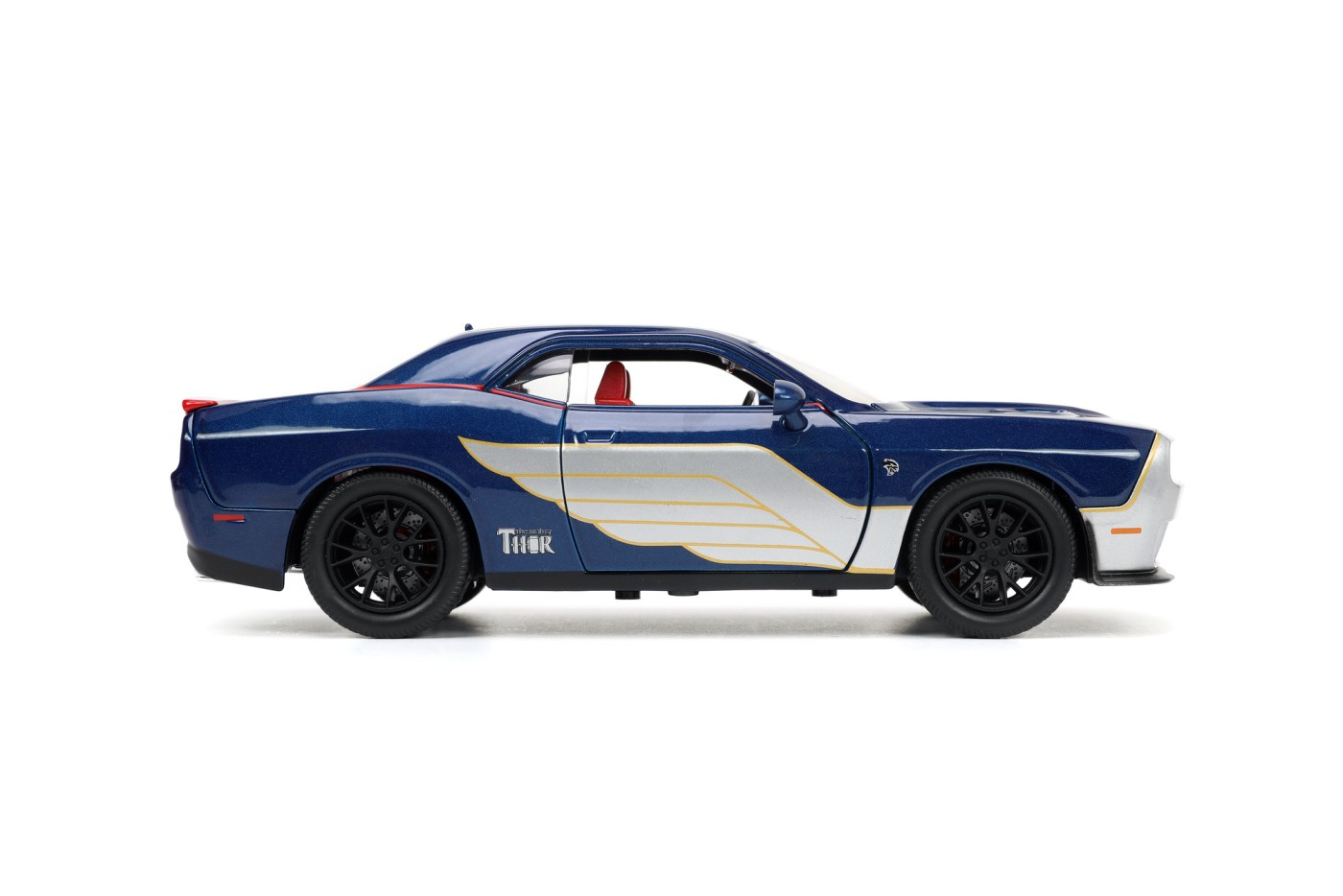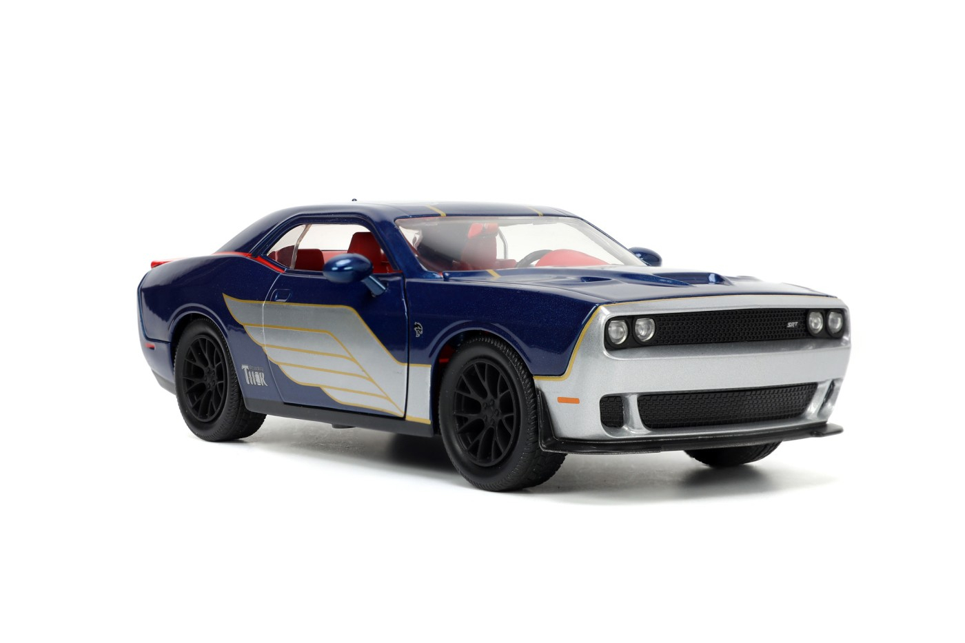 Cu un stil meticulos si inspirat de Zeul tunetului, acest Dodge Challenge SRT8 Hellcat 2015 prezinta linii elegante, cu logo-uri iconice si aripi asgardiene. Acest vehicul are usi, capota si portbagaj care se deschid. insotit de o figurina Thor aceasta plimbare este potrivita pentru zei. Colecteaza toate modelele Marvel inspirate de vehiculele turnate sub presiune cu figurine.
