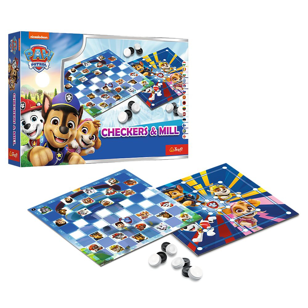 Distractia este in toi cu cei mai curajosi catelusi din Patrula catelusilor. Acest set contine doua jocuri clasice Dame si Moara, reinterpretate intr-un mod amuzant si colorat, perfect pentru cei mici. Copiii vor invata sa planifice, sa anticipeze si sa ia decizii strategice in timp ce se joaca alaturi de personajele lor preferate, Chase, Marshall, Skye si restul echipei de salvare. Fiecare tabla este decorata cu imagini vesele si familiare, transformand jocul intr-o experienta captivanta si educativa. Include pioni albi si negri usor de manevrat, ideali pentru maini mici si jucatori incepatori. O alegere ideala pentru intreaga familie. Continut: 1 tabla de joc pentru Dame,1 placa pentru Moara, 22 de pioni albi, 22 de pioni negri. Varsta recomandata 5 ani+. Jucatori: 2.