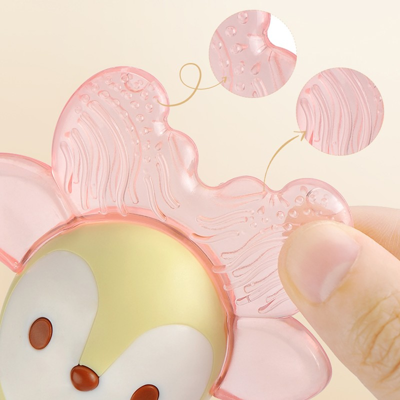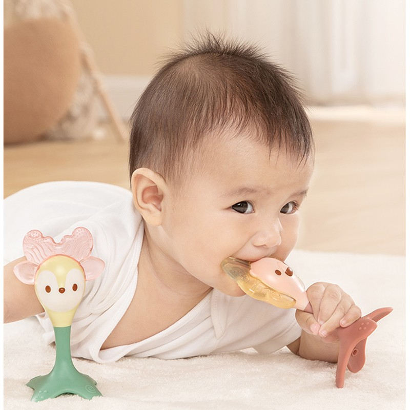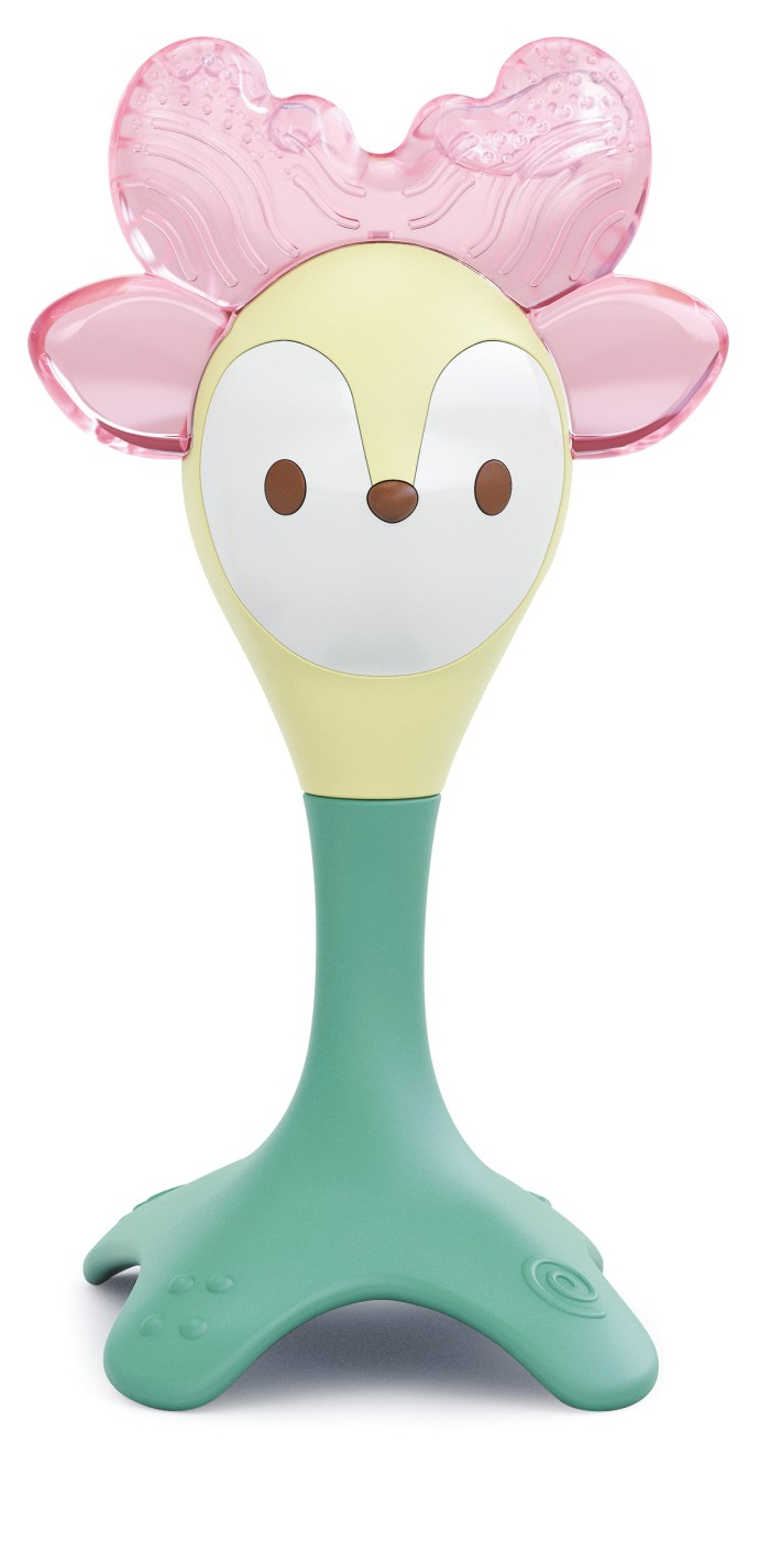 Jucaria in forma de caprioara poate sa fie racita in frigider pentru o calmare mai rapida a durerilor dentare. Are suprafata texturata. Forma speciala si culorile vii incurajeaza copilul sa exerseze si sa se joace, stimuland astfel dezvoltarea individuala. Nu contine bpa. Este confectionata din materiale sigure si durabile.