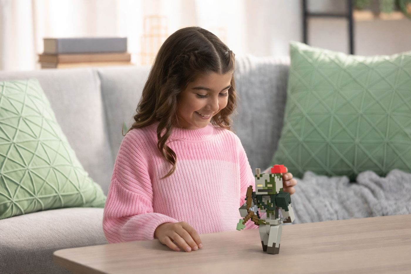 Creeaza, exploreaza si supravietuieste cu figurile Minecraft! Aceste figurine de actiune au fost create in mod autentic folosind designul pixelat al jocului video, asa ca sunt grozave pentru joc si afisare. Articulatiile mobile permit personajelor emblematice sa atinga ipostaze de actiune. Fiecare figurina vine cu o piesa Build A Portal. Jucatorii le pot colecta pe toate pentru a construi un portal complet Minecraft End, care este de doua ori mai inalt decat figura. Este un cadou grozav pentru fanii Minecraft care le vor dori pe toate! Fiecare se vinde separat, in functie de disponibilitate. Culorile si decoratiunile pot varia. Figurinele au articulatii mobile, asa ca fanii Minecraft le pot poza pentru actiune si joc de poveste! Distractie aventuroasa pentru copiii care iubesc explorarea, creativitatea si supravietuirea – in modul Minecraft. Un cadou grozav pentru jucatorii de jocuri video si fanii care iubesc aventura, cu varsta de la 6 ani in sus! Acest pachet contine personajul Booged.