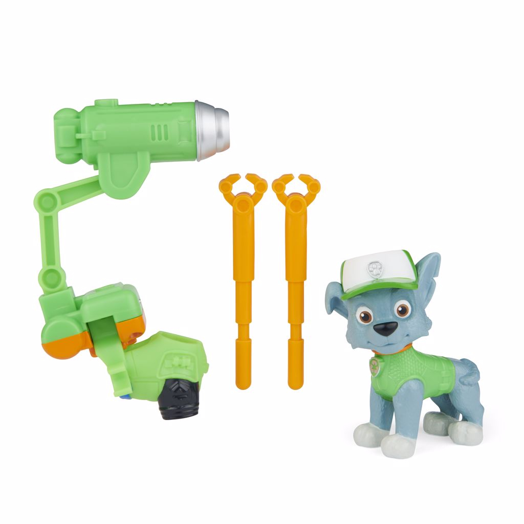 Niciun oras nu este prea mare si niciun catelus nu este prea mic! Participa alaturi de catelusii din Patrula Catelusilor la misiuni de salvare interesante si retraieste momentele tale preferate din filmul Patrula Catelusilor! Aceaste figurine de jucarie din Patrula Catelusilor au detalii realiste ale blanii si detalii din film si sunt echipate cu un rucsac fixat pe spate care contine doua proiectile! Cand apar problemele nu trebuie decat sa ii fixezi rucsacul pentru a-i pune figurinei uniforma noua din film cu instrumentele de salvare in locul uniformei clasice – este atat de usor! Odata ce catelusul este gata de actiune, incarca unul dintre proiectile si apasa butonul de pe spatele lansatorului de pe rucsac pentru a dobori obstacolele si a deveni eroul zilei! Foloseste-ti imaginatia pentru a crea propriile misiuni de salvare Patrula Catelusilor, asa cum ai vazut la cinema. Pentru si mai multe salvari inspirate din film, adauga la colectia ta restul catelusilor din filmul Patrula Catelusilor si joaca-te in interiorul Turnului Orasului (figurinele si turnul sunt vandute separat). Figurinele Patrula Catelusilor sunt jucariile perfecte pentru baieti si fete cu varsta de peste 3 ani. Acest pachet contine personajul Rocky.