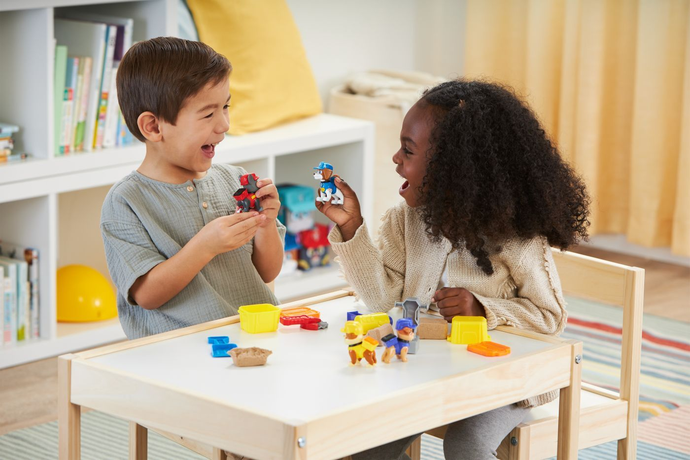Alatura-te echipei Rubble & Crew cu setul Charger & Wheeler Build-It Pack! Acest pachet distractiv include doua figurine adorabile – Charger si Wheeler – pregatite pentru actiune in costumatia lor de constructori. Setul contine si accesorii tematice de santier, inclusiv un disc rotativ, o cuva albastra si un recipient cu nisip kinetic pentru si mai multa distractie creativa. Joaca-te, construieste si creeaza aventuri impreuna cu personajele tale preferate din universul Nickelodeon. Recomandat copiilor peste 3 ani.