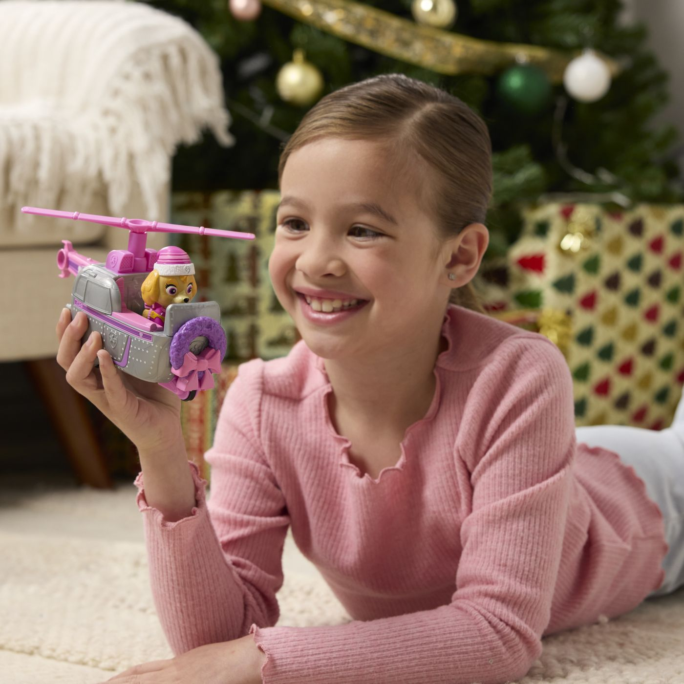 Vehiculul Patrula Catelusilor cu figurina aduce atmosfera festiva direct in joaca celor mici. Masinile si elicopterul au design tematic de iarna, decorate cu culori vesele, detalii de Craciun si accesorii inspirate din sarbatori. Fiecare vehicul este realizat cu atentie la detalii si este pregatit pentru misiuni speciale in sezonul rece. Joaca devine mai distractiva cu vehicule rezistente, usor de manevrat si perfect pentru o colectie completa Paw Patrol. Aceste jucarii sunt ideale pentru cadouri de sarbatori si pentru a aduce magie si voie buna in fiecare zi de joaca.Acest pachet contine personajul Skye.