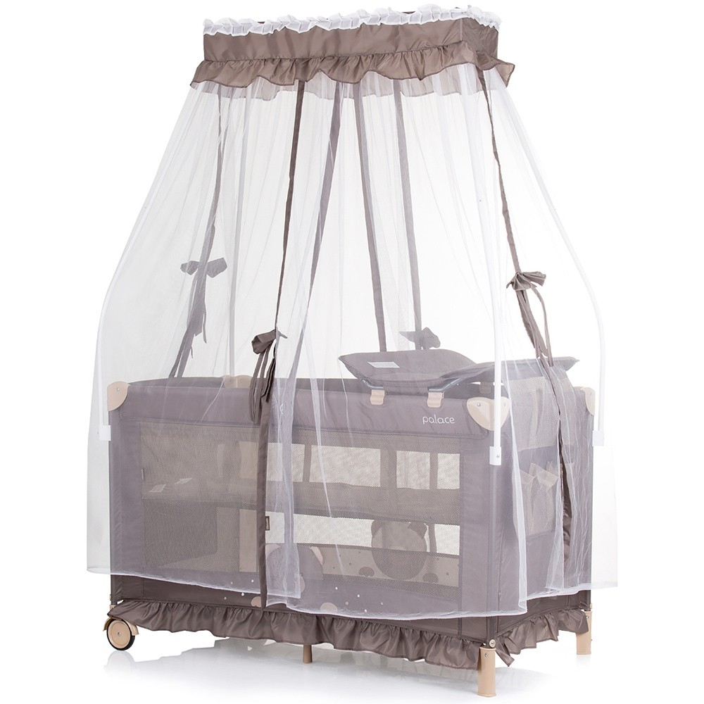 Dimensiuni exterioare (LxW): 126 x 70 сm Dimensiuni interioare (LxW): 120 x 60 cm Inaltime patut: 77 cm Inaltime patut cu baldachin: 168 cm Dimensiuni patut pliat (LxWxH): 77 x 27 x 22 cm Greutate: 13,4 kg