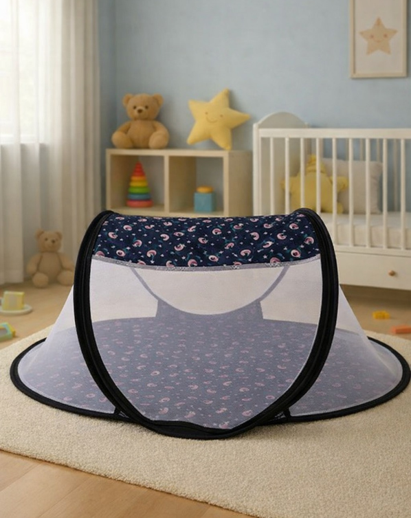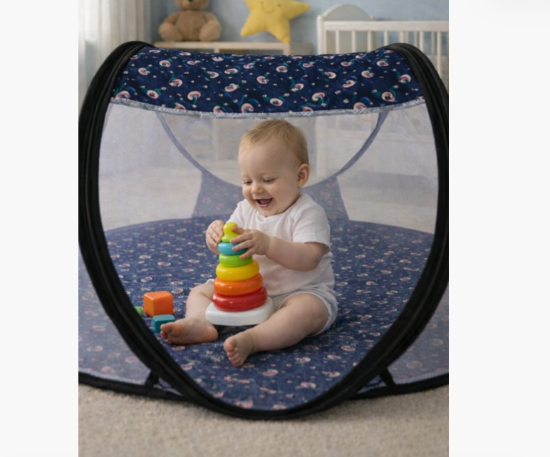 Designul pliabil permite montarea rapidă și depozitarea ușoară, fiind perfect pentru utilizare în dormitor, living sau chiar în vacanțe. Baza stabilă și materialele delicate îl transformă într-un loc confortabil pentru joacă, relaxare sau momente liniștite.