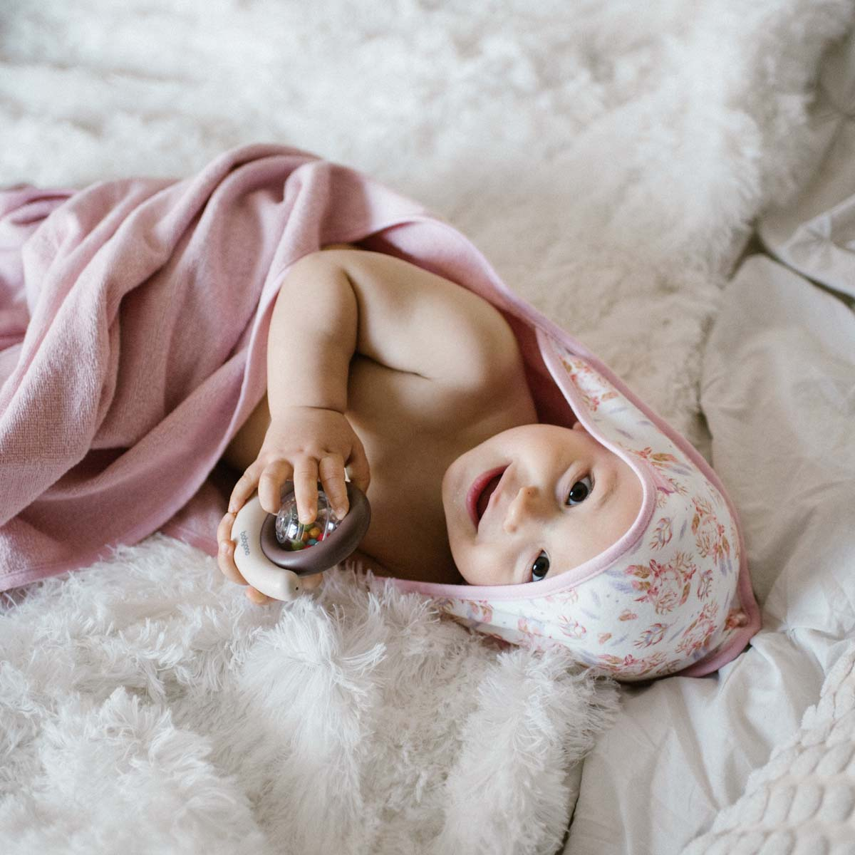 Datorită bumbacului frotir 100%, produsul poate absorbi perfect apa, fără a irita pielea moale a bebelușului.