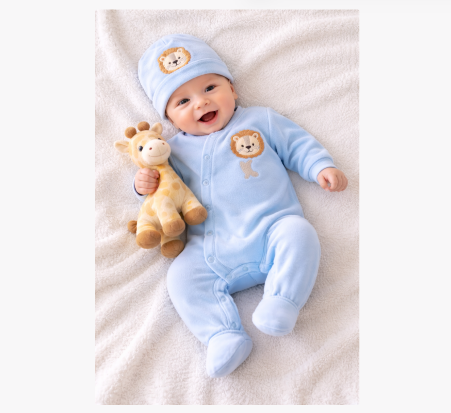 Salopetă confortabilă pentru bebeluși, perfectă pentru pielea delicată a nou-născuților. Fabricată din bumbac 100%, asigurând o senzație moale și plăcută la atingere.