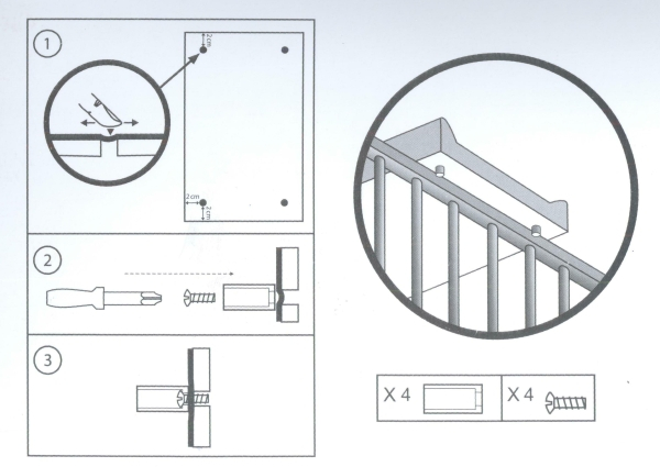 Salteaua de infasat Ceba Baby Comfort include un set de stopere din plastic si suruburile aferente pentru montajul pe paturile de lemn. Acestea opresc miscarea saltelei de pe lateralele patului. Salteaua are laterale inaltate pentru a limita deplasarea sau rostogolirea copilului in exteriorul acesteia.