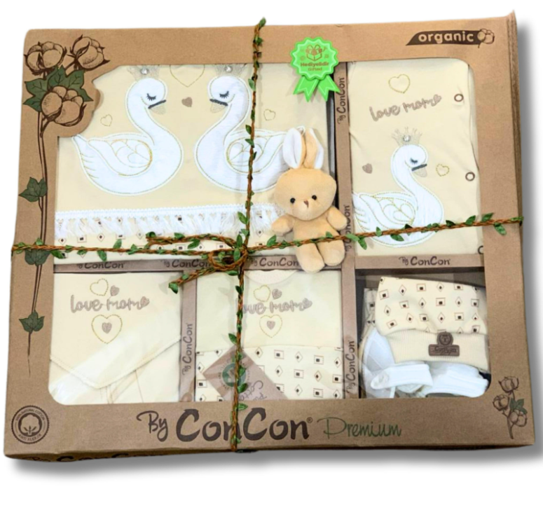 Acest set generos conține tot ce ai nevoie pentru a-ți îmbrăca bebelușul cu stil și confort: * Pătură bumbac organic: Perfectă pentru a-l înfășura pe bebeluș într-o îmbrățișare călduroasă. * Salopetă pentru bebeluși: Un articol vestimentar esențial, practic și adorabil. * Lenjerie din bumbac pieptănat: Moale și confortabilă, ideală pentru a fi purtată sub hăinuțe. * Bluza din bumbac pieptănat: Ușor de îmbrăcat și dezbrăcat, perfect pentru schimbările frecvente. * Barbita din bumbac: Menține hainele curate în timpul mesei sau al sesiunilor de joacă. * Beretă din bumbac: Protejează capul bebelușului de frig și soare. * Mănuși: Previn zgârieturile accidentale și mențin mâinile calde. * Batistă din bumbac pieptănat: Utila pentru a șterge delicat fața bebelușului. * Ciorap: Completează ținuta și menține picioarele calde. * Body: Absoarbe transpirația și menține pielea uscată și confortabilă.