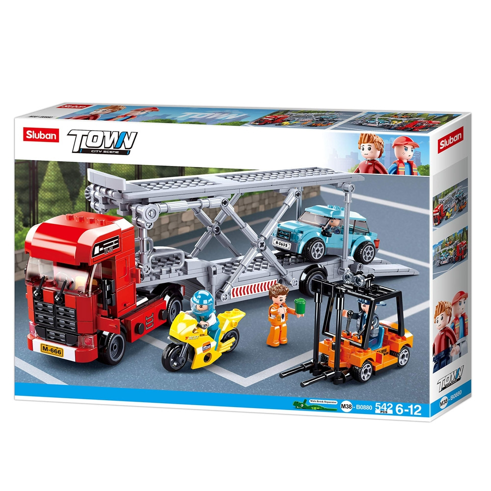 Set de constructie Town, 542 piese, Camion transport masini - Sluban
