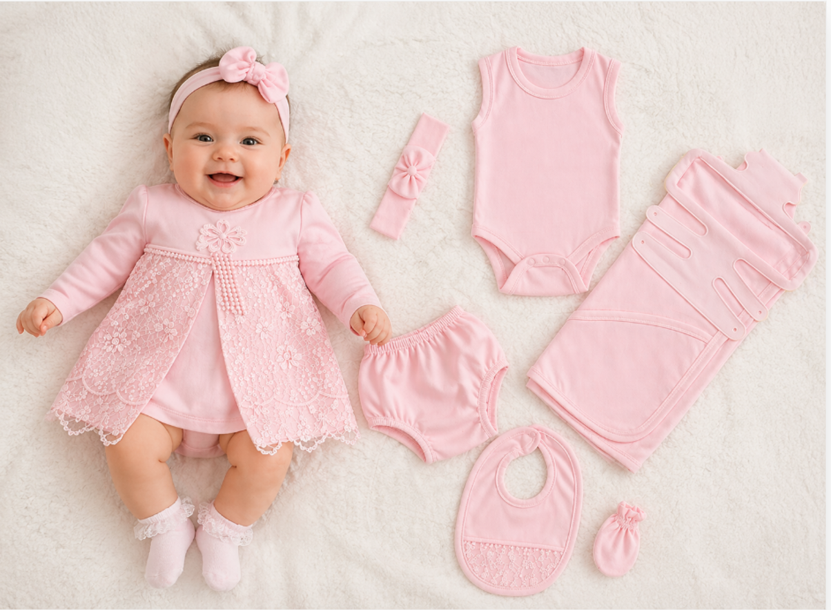 Perfect pentru nou-născuți și bebeluși, acest set combină eleganța cu funcționalitatea, oferind confort maxim pielii sensibile.