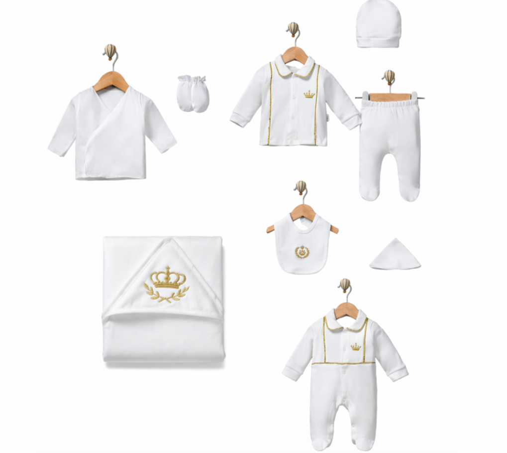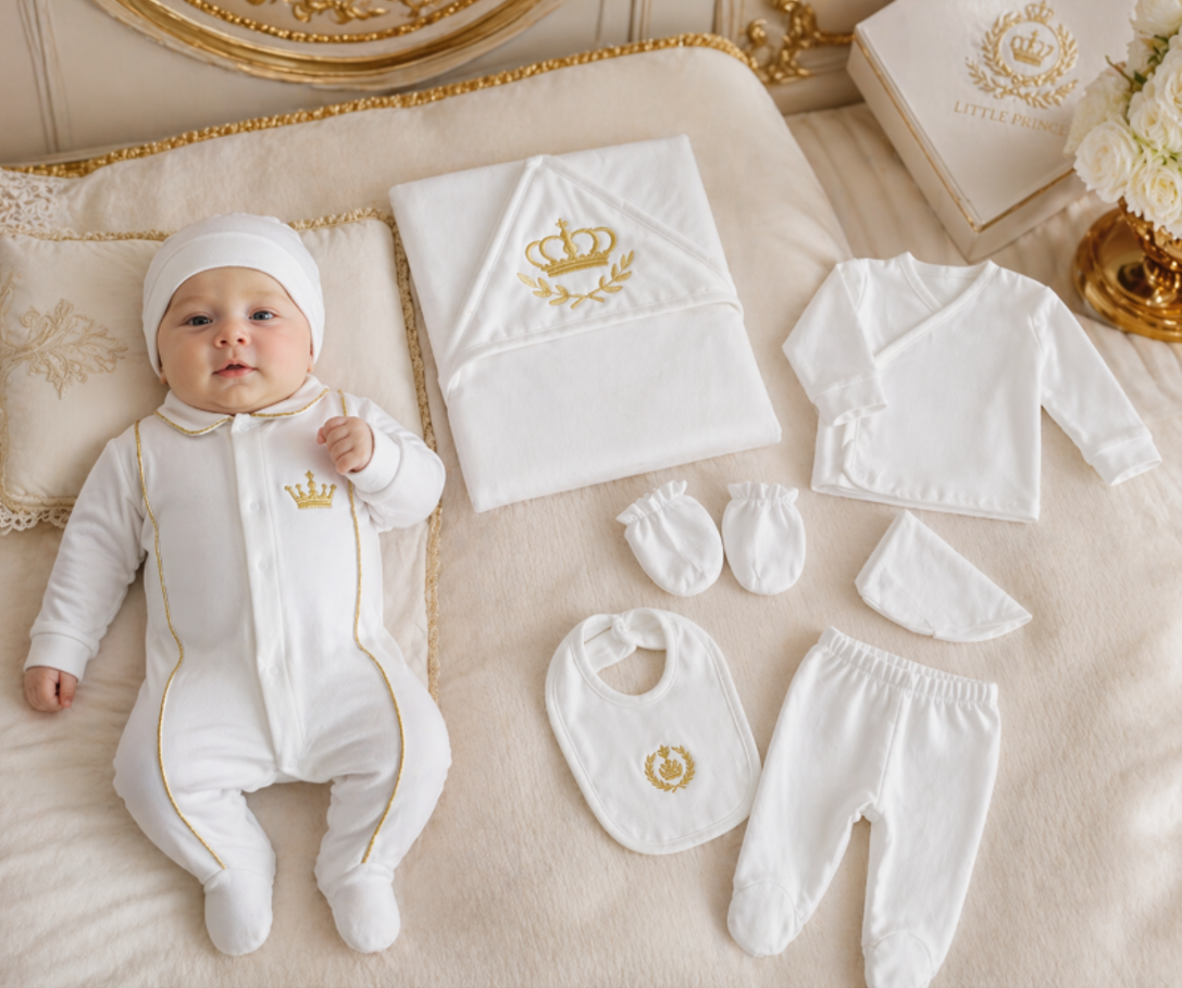 Transformă fiecare moment într-o amintire specială cu acest set complet pentru bebeluși, realizat din materiale moi, delicate și sigure pentru pielea sensibilă. Designul elegant, în nuanțe de alb pur cu accente aurii rafinate, îl face alegerea perfectă pentru botez, ședințe foto sau cadouri premium pentru nou-născuți.
