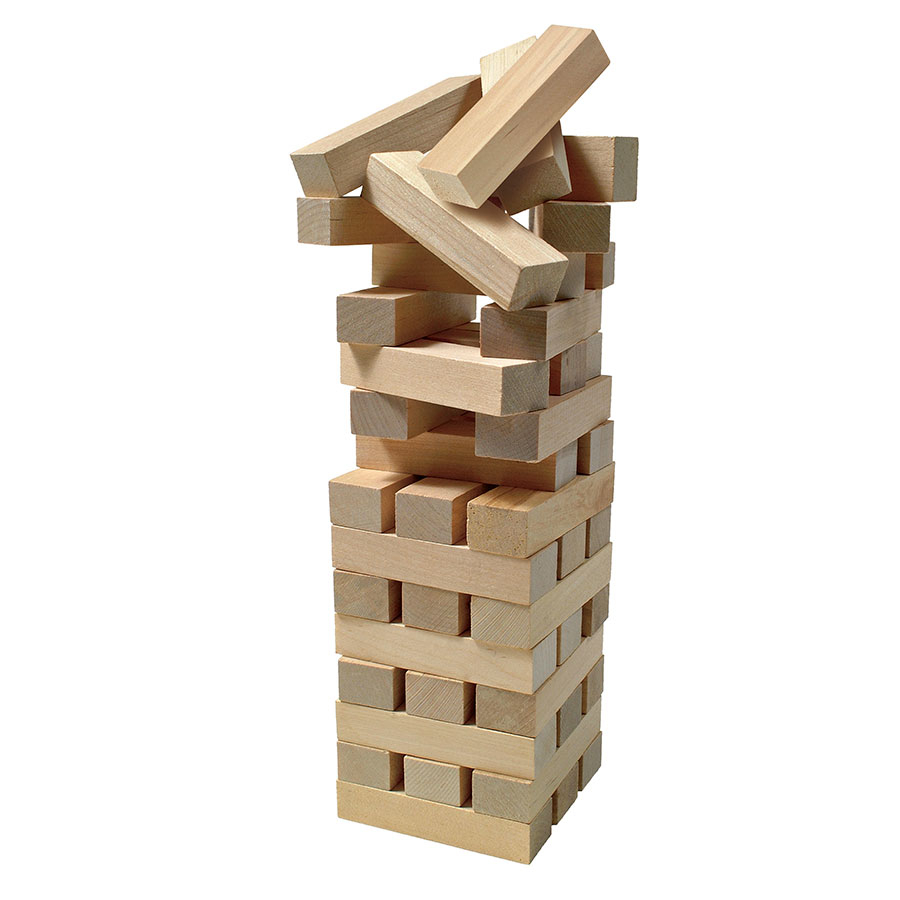 Jocul se joaca cu 48 de blocuri de lemn care sunt puse intr-o formatiune tip turn. Fiecare etaj este format din 3 blocuri unul langa celalalt iar urmatorul etaj va fi pozitionat perpendicular pe cel anterior. Vor exista asadar 16 etaje in turn. Odata ce turnul a fost construit, persoana care l-a construit incepe prima. Miscarea reprezinta extragerea unui bloc de pe orice etaj cu exceptia ultimului construit si pozitionarea acestuia pe ultimul etaj pentru a-l completa. Numai o mana poate fi folosita pentru a indeparta un bloc ambele maini pot fi folosite dar doar una poate fi pe turn la un moment dat. Blocurile pot fi inghiontite pentru a elibera un bloc slab sustinut si care nu deranjeaza restul turnului. Orice bloc mutat din spatiul sau poate fi lasat asa daca se concluzioneaza ca va darma turnul daca se misca. Jocul se termina cand turnul se prabuseste cu alte cuvinte, orice alta piesa care cade din turn, inafara celei scoase pentru a fi mutata. Pierzatorul este cel care a cauzat prabusirea iar cel care a mutat inaintea pierzatorului este castigatorul.