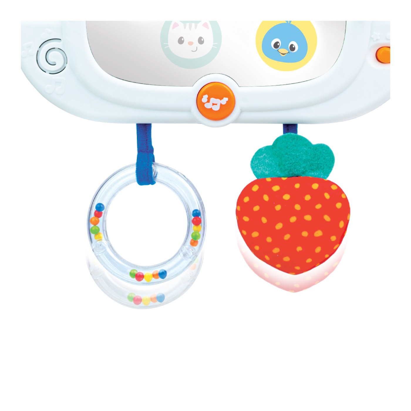 Jucaria Winfun Iepuras cu Activitati este perfecta pentru a insoti micutul in momentele de joaca si relaxare. Acest iepuras adorabil include o oglinda sigura pentru copii cu patru animalute si efecte luminoase care il vor fascina pe cel mic. Cu doua moduri de joaca, "Zi" si "Noapte", jucaria ofera melodii vesele si sunete amuzante pe timpul de zi si melodii linistitoare si sunete din natura pentru un somn calm. Copilul poate trage de inelul de zornait sau de butonul pentru melodii pentru a activa sunetele si efectele luminoase. Datorita posibilitatii de a-l atasa la patut sau la carucior, acest iepuras devine un companion ideal atat pentru joaca, cat si pentru momentele de relaxare.