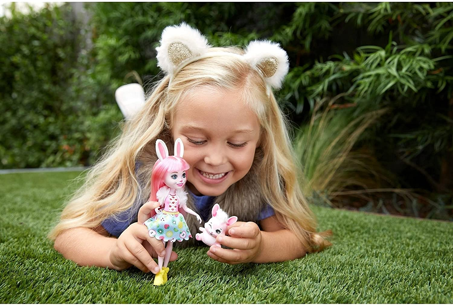 Lasati aceste papusi adorabile si prietenii lor animalute sa va incante. Papusile Enchantimals ™ sunt personaje care impartasesc o legatura speciala cu prietenii lor animalute - sunt mereu impreuna si arata la fel! Alegeti dintre papusile Enchantimals ™ si prietenii lor: un iepuras, o vulpe, un sconcs, un paun, o oaie si o caprioara. Fiecare papusa poarta o tinua si pantofi in culori stralucitoare, printuri florale. Fiecare se vinde separat, in functie de disponibilitate. Culorile si decoratiunile pot varia. Acest set contine personajul Bree Bunny si figurina Twist.