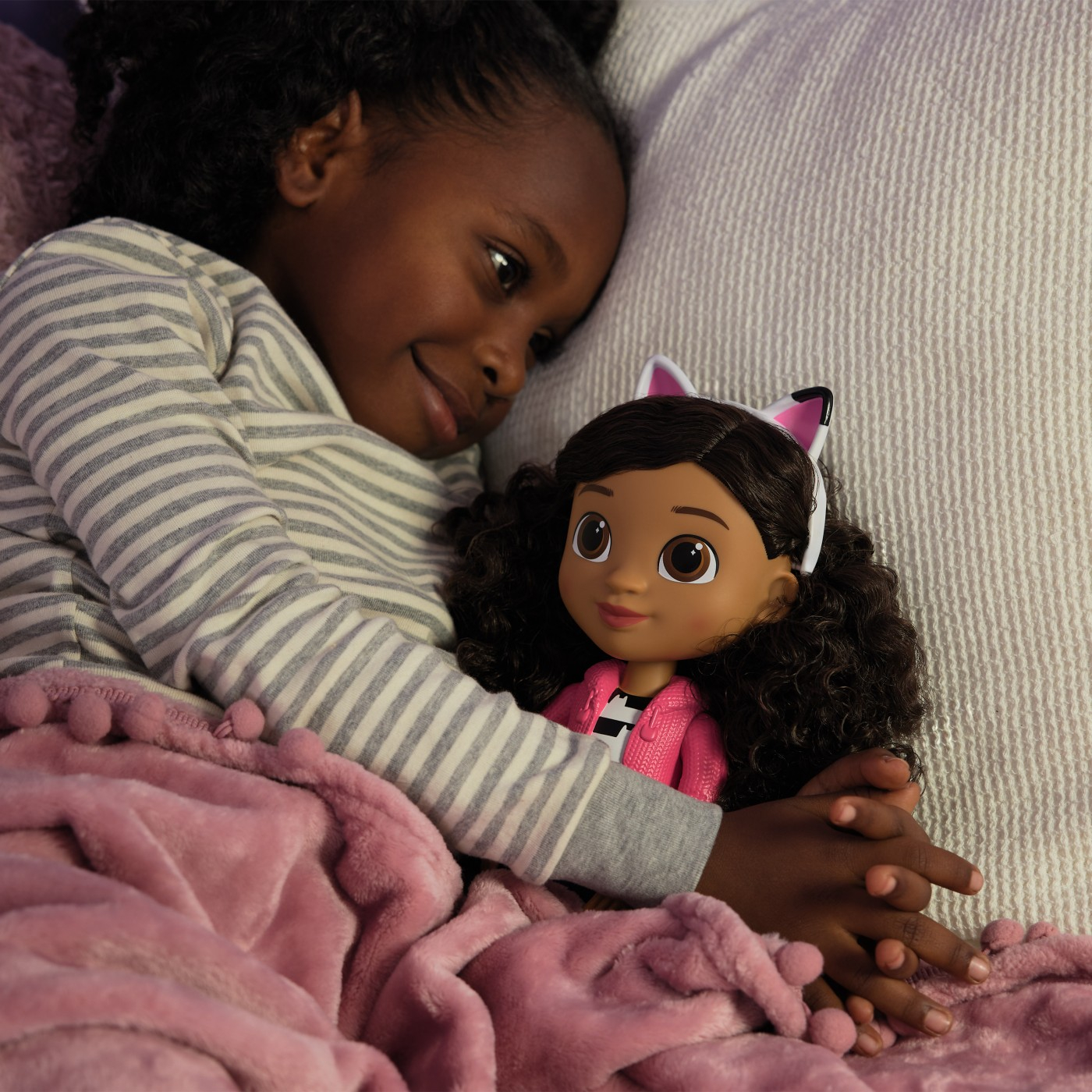 Descopera aventuri magice alaturi de Gabby Girl din Gabby's Dollhouse! Aceasta papusa de 33 cm este imbracata in adidasii sai clasici, blugi cu un petic adorabil de pisicuta, un outfit stilizat si bentita cu urechi de pisica. Bentita este detasabila si include parul moale si cret, pe care il poti aranja cum doresti. Papusa este perfecta pentru jocuri interactive, avand brate si picioare pozabile. Este cadoul ideal pentru copii si fanii serialului. Alatura-te noii tale prietene Gabby pentru aventuri nesfarsite cu Gabby Girl din Gabby's Dollhouse!