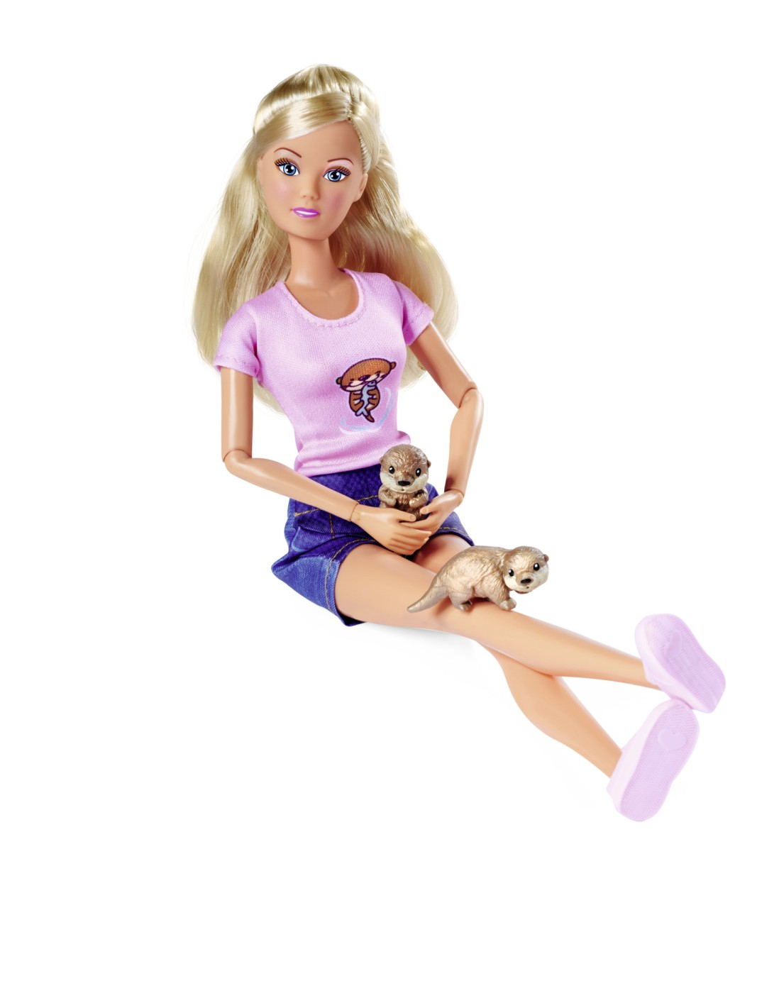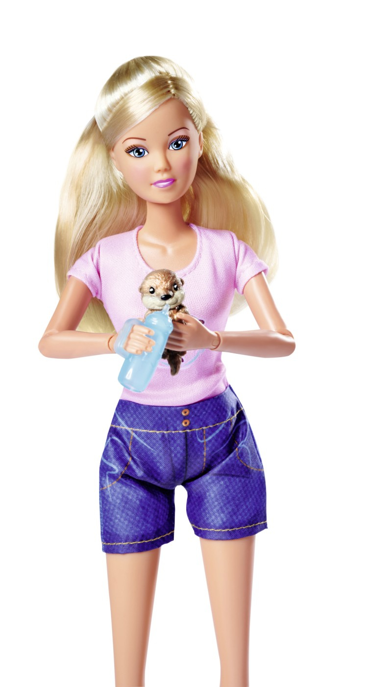 Papusa Steffi Love este o adevarata fashionista. Ii plac hainele sic si coafurile la moda. Fetele isi pot stiliza si imbraca papusa in tendintele actuale ale modei. Steffi a adoptat doua mici vidre de care ii pasa. Ea poarta chiar si un tricou cu un motiv dragut cu vidra. Inaltime papusa 29 cm.