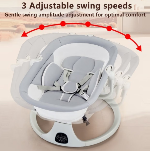 3 Viteze de leagan: Miscarea usoara laterala simuleaza senzatia de a fi tinut in brate de mama, cu 3 setari de viteza pentru a se potrivi nevoilor bebelusului, oferind in acelasi timp bratelor mamei o pauza. Nota: Apasati butonul in sus pentru a debloca inainte de a utiliza functia de leagan. Ecran tactil si telecomanda: Operare usoara cu control bidirectional, permitand parintilor sa selecteze setarea dorita a temporizatorului de leagan de 8, 15 sau 30 de minute.