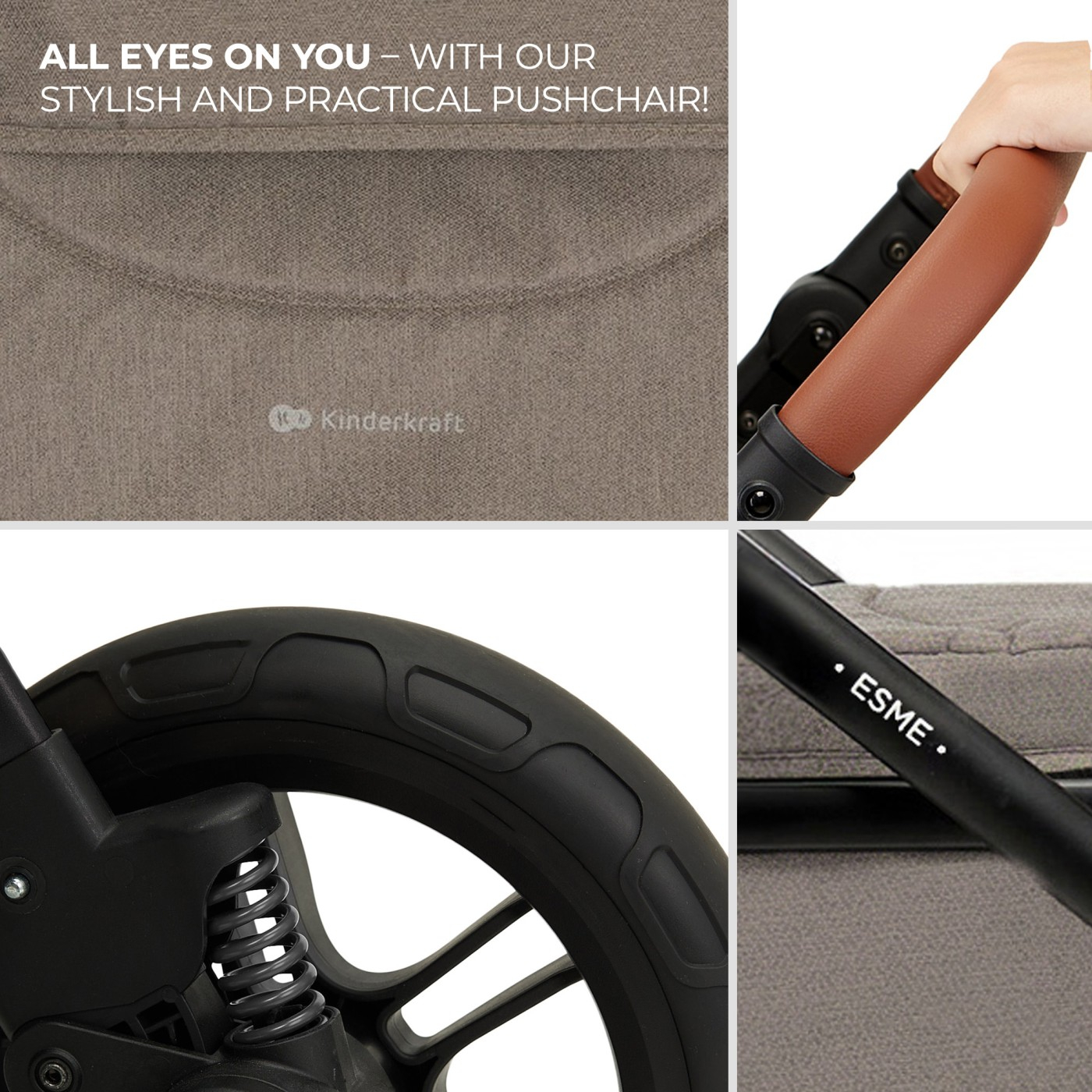 Carucior multifunctional 3 in 1 Kinderkraft ESME, SAND BEIGE Confera eleganta plimbarilor zilnice! ESME 3 in 1 SAND BEIGE este un carucior pentru copii multifunctional 3 in 1, care te va cuceri prin functionalitate si stil. Vei atrage privirile datorita designului sic al intregului carucior. Culorile discrete si cadrul atent confectionat si montat te vor face sa indragesti si mai mult plimbarile zilnice alaturi de copil. Vei aprecia acest carucior si pentru landoul mare cu panou de ventilatie, pe care il poti transforma intr-un scaun de plimbare din numai trei miscari. Aceasta solutie 2 in 1 te va face sa economisesti mult spatiu de depozitare a diverselor elemente. si alte solutii practice merita atentie, precum plierea la dimensiuni compacte impreuna cu scaunul si sistemul practic de calatorie, TRAVEL SYSTEM (scoica auto MINK PRO i-Size si adaptoarele sunt incluse). În plus, caruciorul ESME 3 in 1 SAND BEIGE are roti mari amortizate din cauciuc impenetrabil TPE. Sunt usoare si mobile, ideale pentru fiecare teren. ESME 3 in 1 SAND BEIGE este un carucior care va va insoti atat la plimbarile zilnice, cat si in calatoriile mai lungi din vacante. Setul include multe accesorii necesare, fara niciun cost suplimentar! Bucura-te de plimbare datorita: gentii incapatoare, husei de ploaie, husei pentru picioare si suportului pentru pahar. Carucior multifunctional 3 in 1 cu sarcina maxima maxima pana la 25 kg* ESME 3 in 1 SAND BEIGE este un carucior pentru copii 3 in 1 practic, cu o sarcina maxima totala de pana la 25 kg*. Este dotat cu un cadru rezistent si un scaun functional 2 in 1, care se transforma usor din landou intr-un carucior sport. Setul include multe accesorii, adaptoarele si scoica auto pentru bebelusi. Usor de manevrat ESME 3 in 1 SAND BEIGE se manevreaza deosebit de usor, astfel incat se va descurca bine chiar si in zonele aglomerate. Constructia lui in combinatie cu rotile mobile, fac condusul lui mai simplu. Rotile din fata se pot bloca pentru mersul inainte pe o suprafata mai dificila. În plus, caruciorul este foarte usor de pliat la dimensiuni compacte, iar asta impreuna cu scaunul! O excursie la munte? Sau poate pe litoral? ESME 3 in 1 SAND BEIGE face fata oricarei provocari! Set de accesorii Setul include scoica auto MINK PRO i-Size (40-75 cm) impreuna cu adaptoarele, care iti permit sa creezi un sistem de calatorie (TRAVEL SYSTEM). În plus, odata cu caruciorul vei primi: suportul pentru pahar, husa universala pentru picioare, husa de ploaie si o geanta care se poate prinde pe maner. Landou mare cu panou de ventilatie ESME 3 in 1 SAND BEIGE este un carucior care a fost creat cu gandul la confortul fiecarui copil. Pe cei mai mici ii asteapta un landou mare si incapator cu panou de ventilatie si o copertina mare cu fereastra pentru contactul cu copilul. Landoul este moale si comod, ideal pentru somnul in aer liber. Transformare usoara a landoului intr-un carucior sport sezutul practic 2 in 1 permite transformarea usoara a landoului in carucior sport. Sunt de ajuns trei miscari pentru a transforma caruciorul dintr-unul pentru bebelusi intr-unul pentru copiii mai mari. Datorita acestei solutii nu va trebui sa cauti un spatiu separat pentru depozitarea elementelor caruciorului atunci cand copilul devine prea mare pentru landou si incepe sa mearga in caruciorul sport. TRAVEL SYSTEM ESME 3 in 1 SAND BEIGE a fost creat pentru a va usura plimbarile si calatoriile impreuna. De aceea caruciorul include adaptoare si scoica auto MINK PRO i-Size. Cu ajutorul ei vei crea un TRAVEL SYSTEM, deosebit de folositor in timpul vacantelor. Copilul a adormit in masina? Nicio problema, deconecteaza scoica auto, ataseaz-o la cadrul caruciorului si puteti merge mai departe! Scoica auto MINK PRO i-Size este un scaun RWF (cu spatele catre directia de mers) pentru cei mai mici copii. Siguranta pasagerului este asigurata de sisteme avansate, precum H-GUARD sau SPS. În plus, pozitia RWF este de 5 ori mai sigura decat cea cu fata catre directia de mers. Interval larg de reglare pentru caruciorul sport ESME 3 in 1 SAND BEIGE este un carucior confortabil si pentru copiii mai mari: scaunul caruciorului sport este lung si lat, asa ca va putea fi folosit chiar si de catre prescolari pana la aproximativ 4 ani. Poti regla scaunul usor, in functie de nevoile copilului. Se pot alege pozitiile sezut sau semiculcat, ideala pentru un somn scurt in aer liber. si manerul parintelui poate fi reglat, pentru a-ti fi mai usor sa manevrezi caruciorul. Roti mari pentru orice teren ESME 3 in 1 SAND BEIGE are roti mari impenetrabile cu amortizare completa, realizate din cauciuc TPE usor si rezistent la uzura. Nu trebuie sa le umfli, un avantaj major in cazul calatoriilor mai lungi din vacanta. Sunt potrivite pentru orice teren, atat pentru trotuare, cat si pentru poteci batatorite in padure. Solutii practice ESME 3 in 1 SAND BEIGE are o copertina mare cu fereastra pentru contactul cu copilul, care il protejeaza pe cel mic de vant si soare. Sub scaun se afla un cos incapator cu sarcina maxima de 3 kg, ideal pentru cumparaturi sau accesoriile de care ai nevoie. În plus, siguranta copilului in timpul plimbarii in caruciorul sport este asigurata de hamul de siguranta in 5 puncte reglabil cu pernute moi si bariera rabatabila, detasabila pe ambele parti. Stil elegant Pe ESME 3 in 1 SAND BEIGE il potrivesti la tine si stilul tau: caruciorul este disponibil in 3 culori la moda, iar materialul moale si finisajul sic ii ofera un aspect elegant in timpul fiecarei plimbari. Fabricatie: Materiale: Cadru: otel Roti: cauciuc TPE Bariera si manerul parintelui: piele ecologica tesatura: poliester Dimensiuni: Caruciorul desfacut: 100 x 60 x 102,5 cm Caruciorul pliat: 72 x 60 x 40 cm Dimensiunile scaunului: 19 x 35 cm Dimensiunile spatarului: 41 x 35 cm Dimensiunile suportului pentru picioare 19 x 35 cm Lungimea totala a scaunului in pozitia culcata: 79 cm Distanta de la scaun la sol: 55 cm Diametrul rotilor din fata: 18 cm (8 inci) Diametrul r