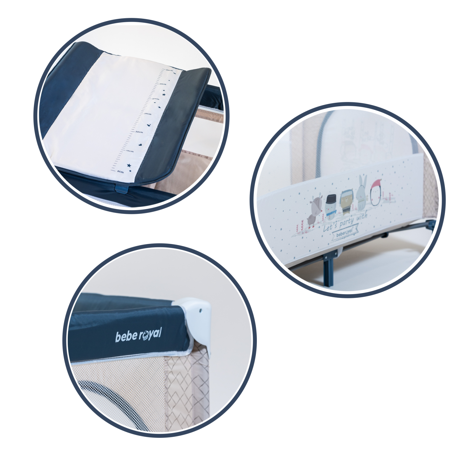 Let’s party with Bebe Royal este o combinatie universala, folosibila indoor si outdoor, dintre un patut de calatorie si un tarc de joaca. Structura stabila defineste produsul. Capacele din plastic conturate care protejeaza marginile modelului Let’s party with Bebe Royal asigura, de asemenea, un nivel ridicat de siguranta.