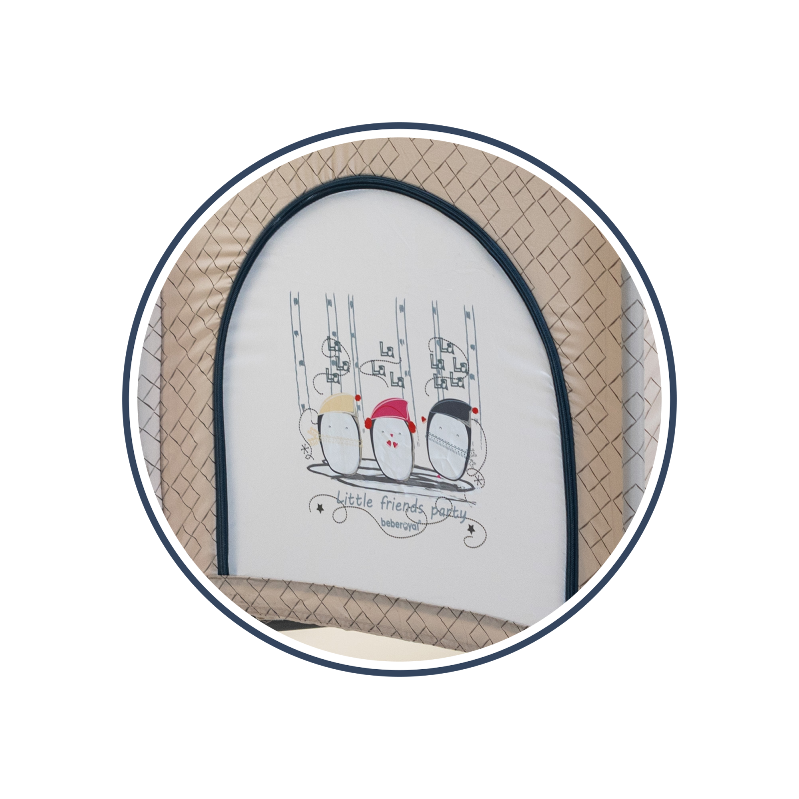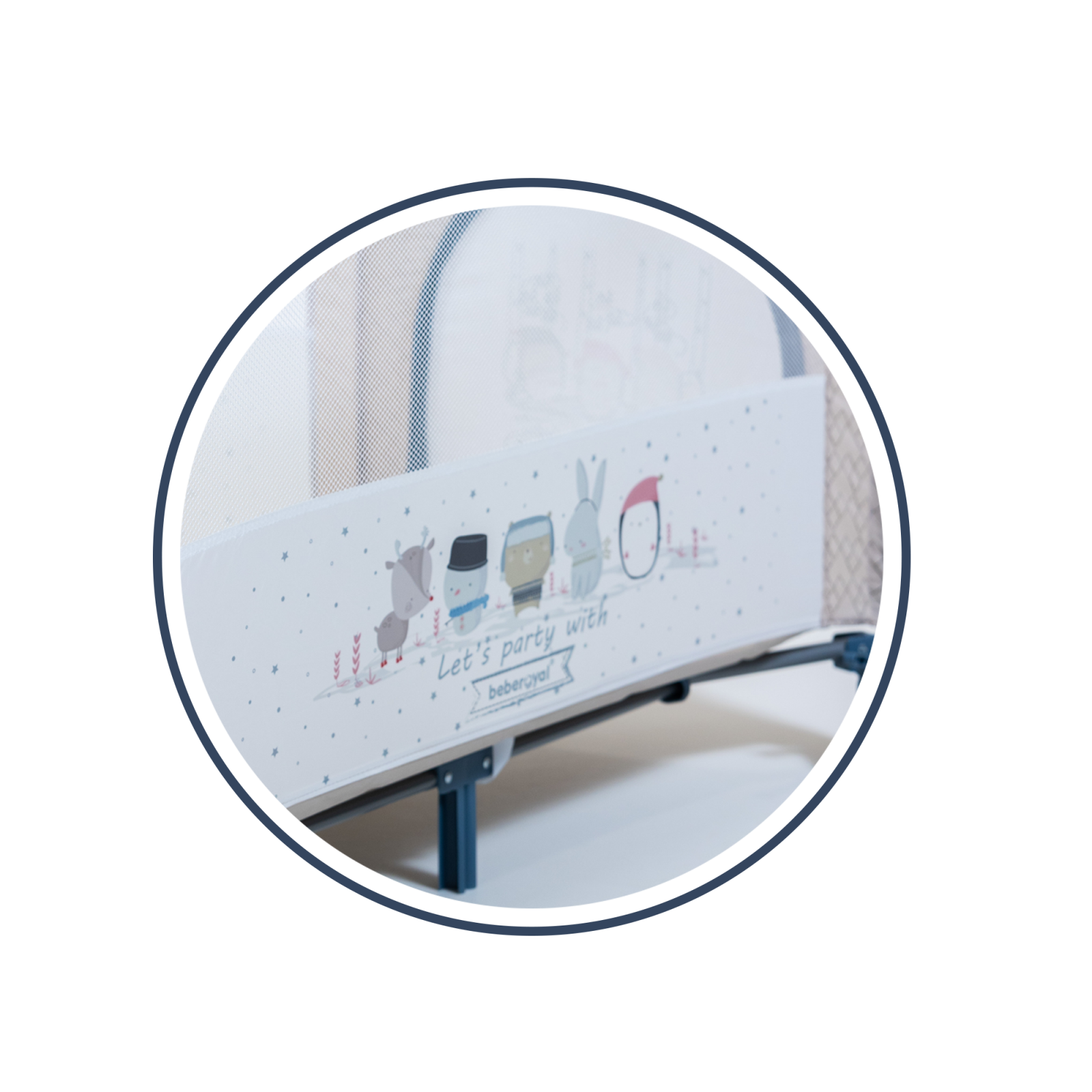 Let’s party with Bebe Royal are o saltea de 2 inaltimi, care va permite sa schimbati patutul intr-un tarc de joaca. Produsul este echipat cu o intrare laterala cu fermoar pentru copiii mai mari iar laturile mai lung iau o plasa aerisita incorporata.