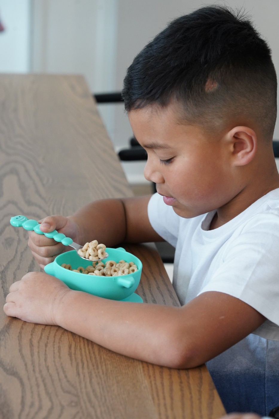 Set 2 boluri silicon cu ventuza, Melii, model rechin Sa fim sinceri, hranirea copiilor nu este o sarcina usoara - este dezordonata! Bolurile noastre cu ventuza din 100% silicon sunt menite sa faca ora mesei mai putin stresanta si mai distractiva. Pur si simplu plaseaza-l pe o suprafata plata si lasa ventuza sa faca magia. Nu mai trebuie sa-ti faci griji ca bolurile vor zbura si ajung rasturnate pe podea! Varietatea de designuri cu animale incurajeaza alimentatia independenta, creand o asociere pozitiva cu ora mesei. Aceasta caracteristica este ideala pentru bebelusi si copii mici, pe masura ce invata sa se hraneasca singuri. Compatibil cu toate tipurile de scaune inalte. Fa din ora mesei o activitate distractiva cu copilul tau! Mai putin stres si FaRa MIZERIE! Colectioneaza toate cele 5 modele dragute de animale. CARACTERISTICI PRODUS Design vesel si prietenos 100% realizate din silicon alimentar, ventuza mare care mentine bolul fixat, capacitate 300ml, include 2 boluri la pachet. Sigure pentru utilizare in cuptorul cu microunde sau congelator: sii cel mai important, animalele fac hranirea distractiva! Se pot cuibari si stivui cu usurinta in dulapurile din bucatarie pentru o depozitare compacta. Ajuta la alimentatia independenta: Bolurile Melii cu ventuza model rechin sunt 100% din silicon si vor incuraja alimentatia independenta si dezvoltarea abilitatilor motorii fine. Diferitele designuri cu animale ofera o asociere pozitiva cu ora mesei. Bolul ramane pe loc, indiferent cat de tare incearca mancaciosul tau sa il arunce pe podea. Excelent pentru bebelusi si prescolarii care invata sa se hraneasca singuri. Se potriveste cu toate scaunele inalte. Non-toxice: Produsele Melii sunt de inalta calitate si nu contin substante chimice nocive: fara BPA, fara plumb, fara cadmiu, fara PVC si sunt fabricate din 100% silicon alimentar. Sunt fabricate din silicon moale si durabil, fara margini ascutite. Sunt rezistente si flexibile. Utilizare in masina de spalat vase: Curatati temeinic cu detergent si apa calda sau pe raftul superior al masinii de spalat vase inainte de prima utilizare si dupa cum este necesar. Inspectati produsul inainte de fiecare utilizare si aruncati-l la primul semn de deteriorare sau slabiciune.