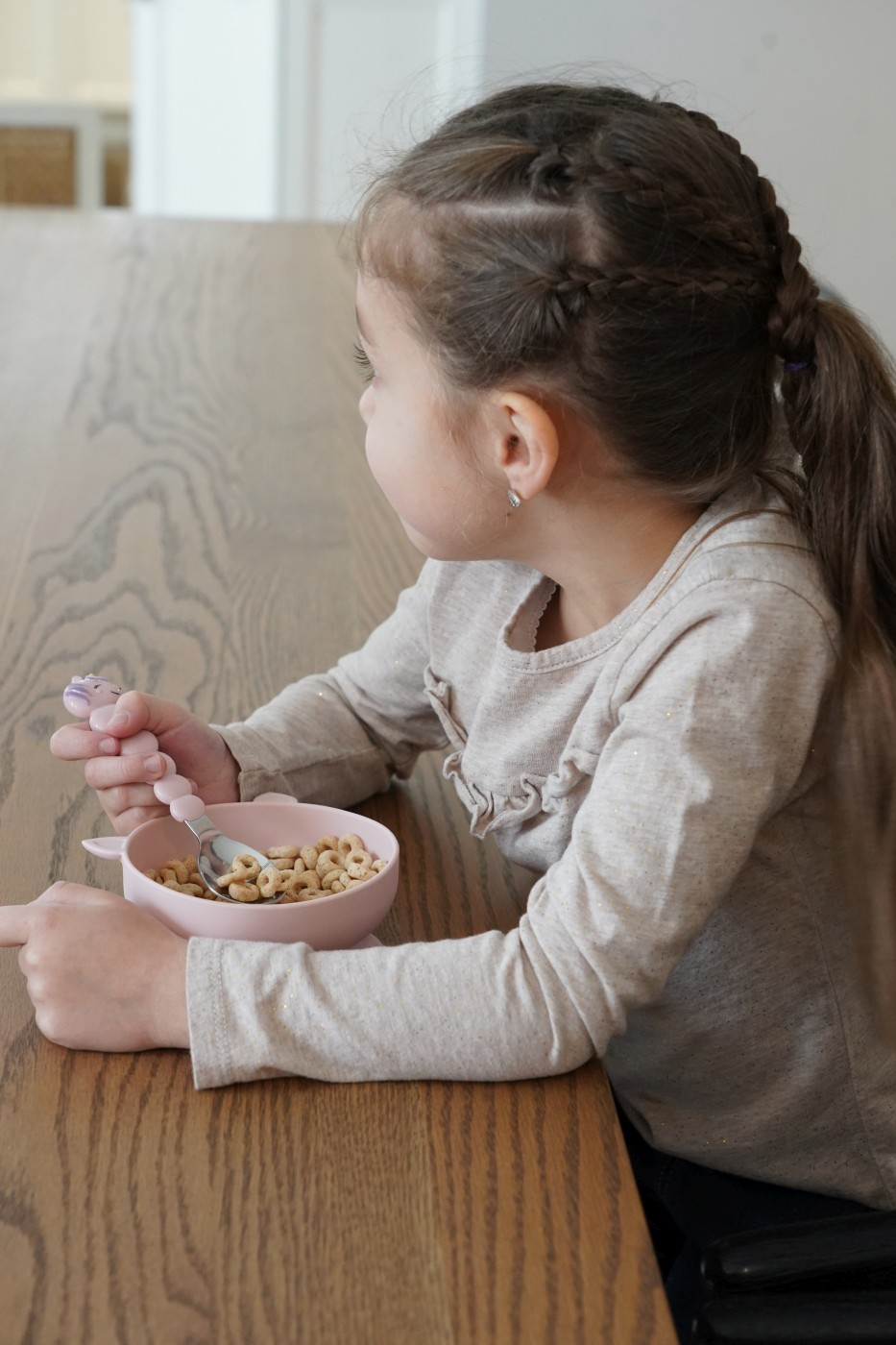 Set 2 boluri silicon cu ventuza, Melii, model unicorn Sa fim sinceri, hranirea copiilor nu este o sarcina usoara - este dezordonata! Bolurile noastre cu ventuza din 100% silicon sunt menite sa faca ora mesei mai putin stresanta si mai distractiva. Pur si simplu plaseaza-l pe o suprafata plata si lasa ventuza sa faca magia. Nu mai trebuie sa-ti faci griji ca bolurile vor zbura si ajung rasturnate pe podea! Varietatea de designuri cu animale incurajeaza alimentatia independenta, creand o asociere pozitiva cu ora mesei. Aceasta caracteristica este ideala pentru bebelusi si copii mici, pe masura ce invata sa se hraneasca singuri. Compatibil cu toate tipurile de scaune inalte. Fa din ora mesei o activitate distractiva cu copilul tau! Mai putin stres si FaRa MIZERIE! Colectioneaza toate cele 5 modele dragute de animale. CARACTERISTICI PRODUS Design vesel si prietenos 100% realizate din silicon alimentar, ventuza mare care mentine bolul fixat, capacitate 300ml, include 2 boluri la pachet. Sigure pentru utilizare in cuptorul cu microunde sau congelator: sii cel mai important, animalele fac hranirea distractiva! Se pot cuibari si stivui cu usurinta in dulapurile din bucatarie pentru o depozitare compacta. Ajuta la alimentatia independenta: Bolurile Melii cu ventuza model unicorn sunt 100% din silicon si vor incuraja alimentatia independenta si dezvoltarea abilitatilor motorii fine. Diferitele designuri cu animale ofera o asociere pozitiva cu ora mesei. Bolul ramane pe loc, indiferent cat de tare incearca mancaciosul tau sa il arunce pe podea. Excelent pentru bebelusi si prescolarii care invata sa se hraneasca singuri. Se potriveste cu toate scaunele inalte. Non-toxice: Produsele Melii sunt de inalta calitate si nu contin substante chimice nocive: fara BPA, fara plumb, fara cadmiu, fara PVC si sunt fabricate din 100% silicon alimentar. Sunt fabricate din silicon moale si durabil, fara margini ascutite. Sunt rezistente si flexibile. Utilizare in masina de spalat vase: Curatati temeinic cu detergent si apa calda sau pe raftul superior al masinii de spalat vase inainte de prima utilizare si dupa cum este necesar. Inspectati produsul inainte de fiecare utilizare si aruncati-l la primul semn de deteriorare sau slabiciune.