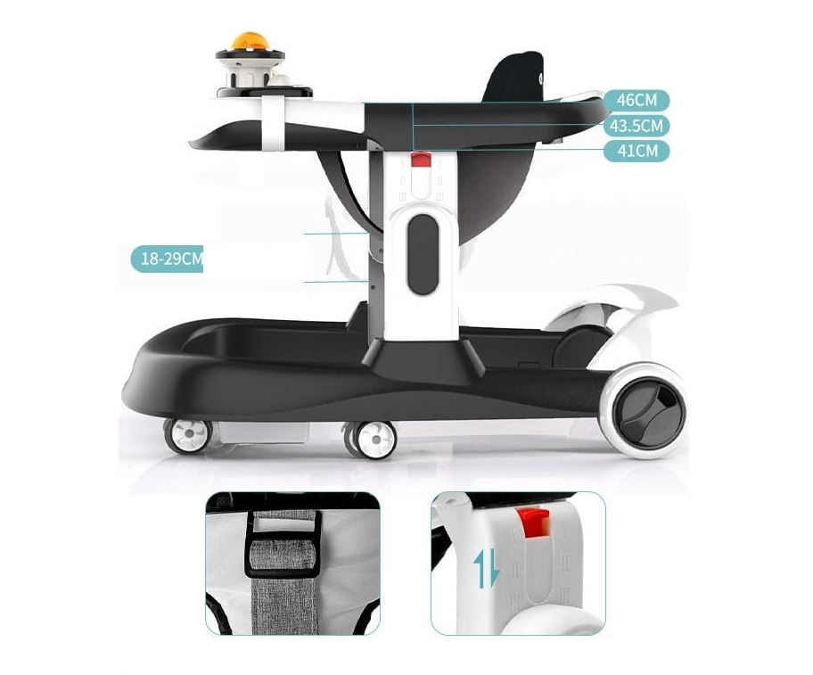 cand merge mai bine sustinut, premergatorul poate fi utilizat pe post de antemergator, avand un maner in partea din spate cu care poate impinge ori parintele,ori bebe