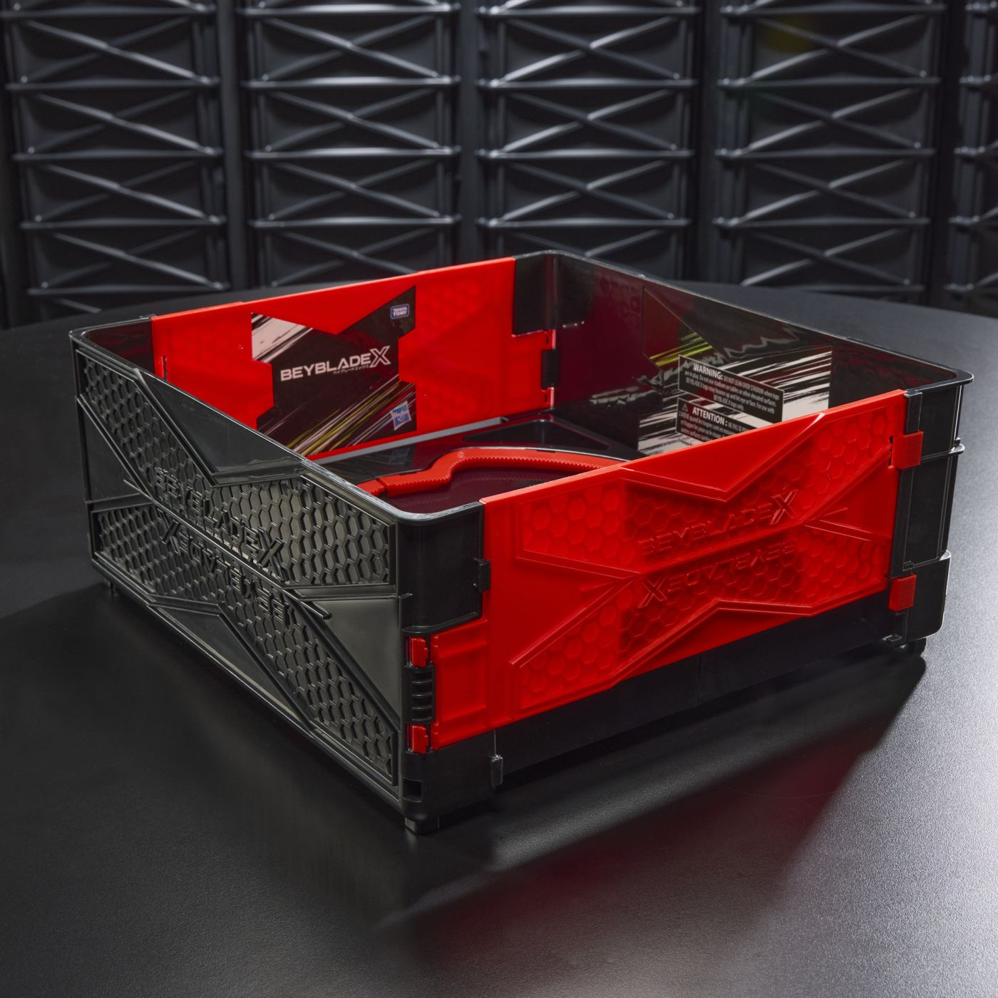 Experimenteaza Beyblade X, urmatoarea generatie de stadioane, lansatoare si topuri Beyblade! Jucatorii de blade isi lanseaza topurile in ciocniri aprige impotriva adversarilor pentru a marca puncte – primul care acumuleaza 4 puncte castiga. Du batalia oriunde mergi cu Beyblade X Clash and Carry Beystadium! Acest stadion portabil se deschide intr-o arena de lupta si se inchide pentru transport si depozitare usoara. Este dotat cu sistemul de angrenaje X-Celerator pentru a-ti imbunatati jocul. Cand angrenajul unui top Beyblade X se agata de sina stadionului, acesta poate accelera rapid intr-o cursa Xtreme in jurul stadionului pentru coliziuni zdrobitoare. Asociaza Beystadium-ul cu lansatoare si lamele, clichetele si piesele interschimbabile ale topurilor Beyblade X pentru a-ti crea propriul Bey de neegalat. (Lansatoarele si topurile se vand separat, in functie de disponibilitate.) Parinti, scanati codul de pe topurile Beyblade X pentru a lupta in aplicatia Beyblade X! Jucariile Beyblade cu topuri metalice turnate autentice Takara Tomy sunt cadouri excelente pentru baieti si fete cu varsta de 8 ani si peste.