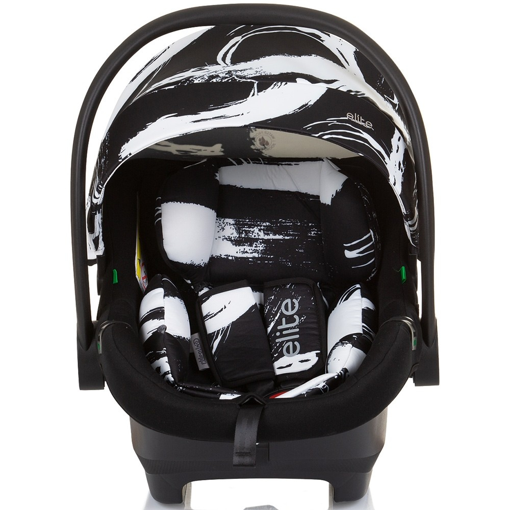 Scaunul auto are copertina reglabila si o baza cu sistem de leganare
