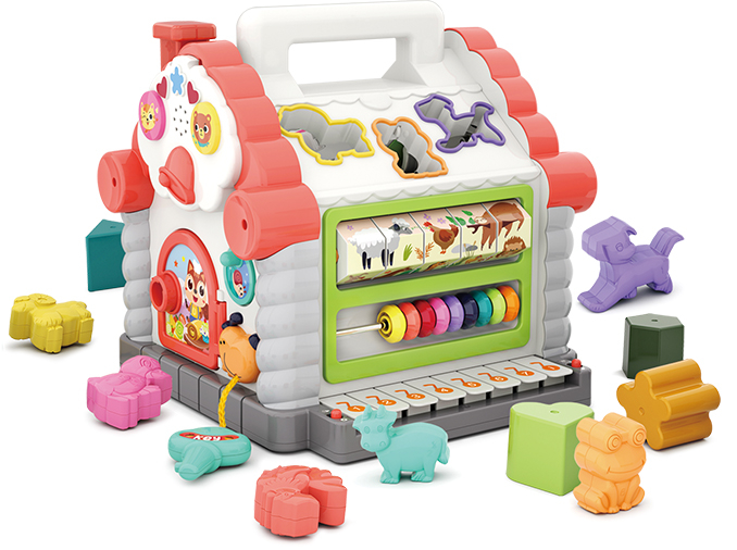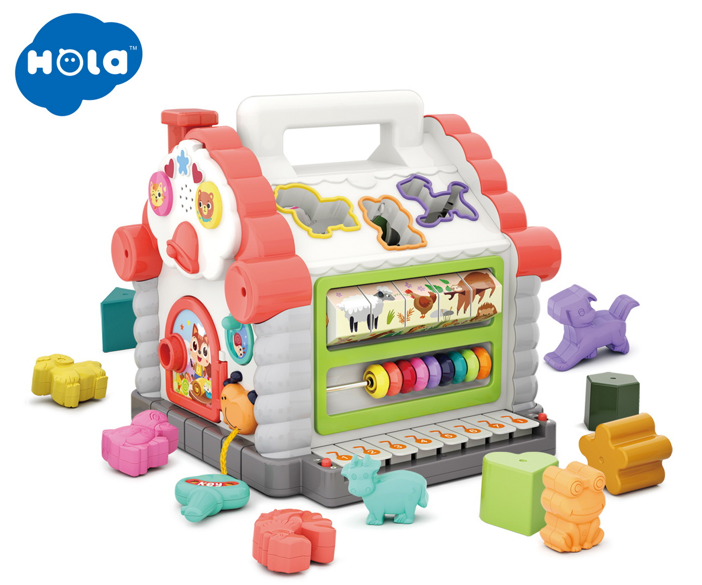 Copilul dumneavoastra poate sa se joace si sa invete alaturi de casuta cu forme, lumini si sunete de la HolaToys. Acesta va oferi copilului dumneavoastra momente pline de distractie si veselie, iar dumneavoastra, privindu-l, zambete nemasurabile. Fiecare din fetele jucariei contine activitati diferite, menite sa dezvolte perceptia vizuala si auditiva si coordonarea dintre maini si ochi a copilului dumneavoastra. Copilul poate umple casuta cu diversele forme, sa o goleasca si sa inceapa din nou. Pentru a dezvolta si mai mult coordonarea dintre ochi si mana, copilul trebuie sa descuie usita cu cheia ca sa poata scoate formele din casuta. Una din fetele casutei detine numaratoare, precum si o bara speciala pentru calcule matematice. Fiecare din fetele jucariei vine cu activitati diferite, menite sa dezvolte perceptia vizuala si auditiva si coordonarea dintre maini si ochi a copilului dumneavoastra. Formele speciale si culorile vii incurajeaza copilul sa exerseze si sa se joace stimuland astfel dezvoltarea individuala. Functioneaza cu 2 baterii AA de 1.5v ce sunt incluse. Dimensiuni produs: 21cm L x 22.3 l x 22cm h. Pretul acestui produs include taxa de timbru verde.