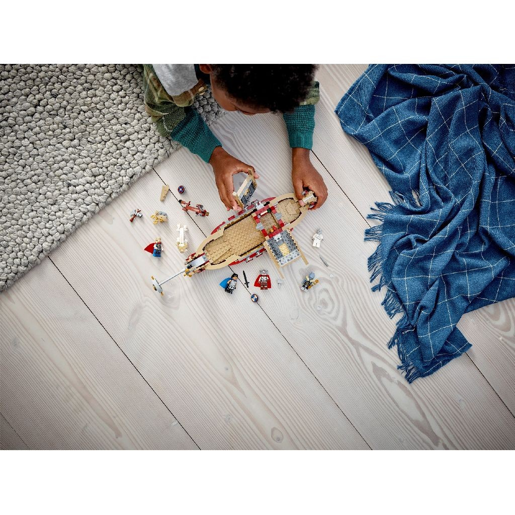 O corabie in stil viking care include personaje celebre din filmul Marvel Thor: Love and Thunder, setul LEGO Marvel Corabia lui Thor (76208) este cadoul ideal pentru copiii cu varste de la 8 ani in sus. Corabia este purtata pe cer de catre cele doua capre Tanngrisnir si Tanngnjóstr si mai include 5 minifigurine - Thor, Mareata Thor, Valkyrie, Korg si Gorr - plus numeroase arme si accesorii, inclusiv securea lui Thor, Stormbreaker. Cabina corabiei are un acoperis care se deschide, iar setul include si accesorii precum un stingator de incendii, o harta a Noului Asgard, o sticla si un cristal de Piatra Soarelui. Dupa ce joaca a luat sfarsit setul arata minunat expus in colectia ta. LEGO Marvel Corabia lui Thor (76208) iti aduce actiunea si aventura filmului Thor: Love and Thunder. Super Eroi de legenda - Thor, Mareata Thor, Valkyrie, Korg si Gorr plus accesorii pentru joaca. Cadoul perfect pentru fanii filmelor cu super eroi Marvel cu varste de la 8 ani in sus. Modelul construit masoara peste 10 cm inaltime, 43 cm lungime si 12 cm latime si poate fi combinat cu alte jucarii LEGO Marvel pentru si mai multa distractie.