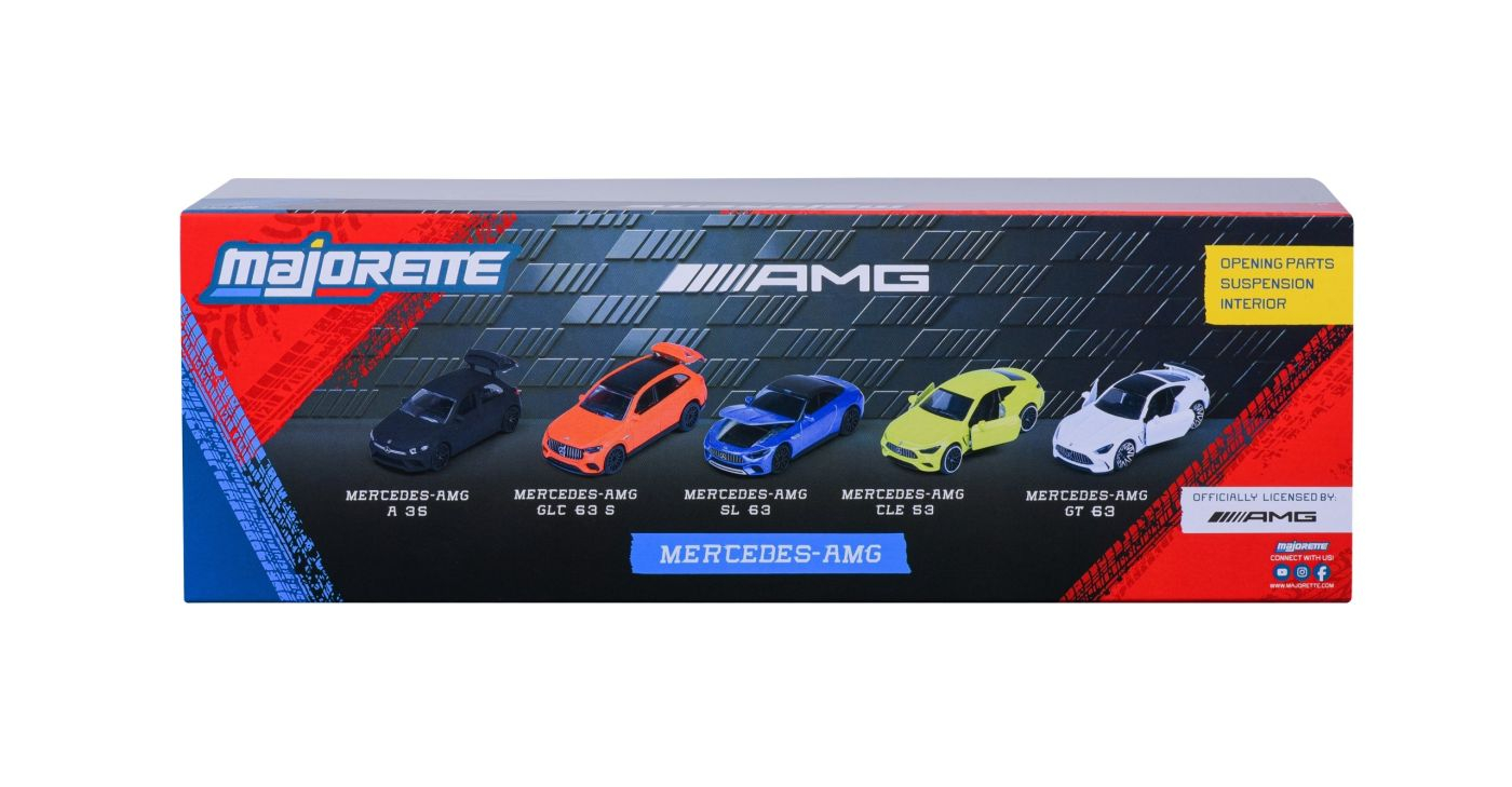 Setul de 5 masinute metalice Majorette Mercedes-AMG E este dedicat pasionatilor de masini sport si colectionarilor, oferind o selectie premium de vehicule miniaturale inspirate din modelele de performanta Mercedes-AMG. Fiecare masinuta este realizata din metal turnat, cu finisaje de inalta calitate, proportii realiste si detalii atent reproduce, reflectand designul agresiv si elegant specific gamei AMG. Vehiculele sunt echipate cu roti functionale, permitand rularea usoara, si sunt prezentate intr-o cutie eleganta de tip vitrina, ideala atat pentru expunere, cat si pentru depozitare. Culorile variate si stilul exclusiv transforma acest set intr-o piesa atractiva pentru orice colectie auto in miniatura. Setul este potrivit atat pentru joaca, cat si pentru colectare, fiind recomandate copiilor cu varsta de peste 3 ani, dar si adultilor pasionati de branduri auto premium.