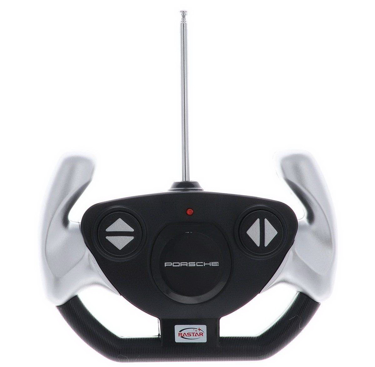 Copilul dumneavoastra se poate juca in voie cu masina cu telecomanda Porsche Gt3, scara 1 la 14, oferita de brandul international Rastar. Nicio cursa nu este imposibil de castigat cu acesta masinuta, replica oficiala cu licenta a modelului original, construita cu mare atentie la detalii. Masinuta are proportiile ideale pentru momente pline de distractie si amuzament, avand dimensiunile in centimetri dupa cum urmeaza : 31.9*13.9*9.7.Masinuta functioneaza pe frecventa de 2.4G.Alimentarea se face astfel : pentru masinuta sunt necesare 5 baterii tip AA , iar pentru telecomanda 2 tip AA.Masinuta se poate deplasa in toate directiile : inainte, inapoi, stanga sau dreapta. Masina cu telecomanda Porsche Gt3, scara 1 la 14, poate rula cu o viteza aproximativa de 10km/h, are tractiune 2WD, anvelope de cauciuc, posibilitate de reglaj a directiei direct pe sasiu si o raza de actiune a telecomenzii de circa 20 de metri.Acesta masinuta are si o functie suplimentara care face ca farurile si stopurile masinutei sa lumineze.