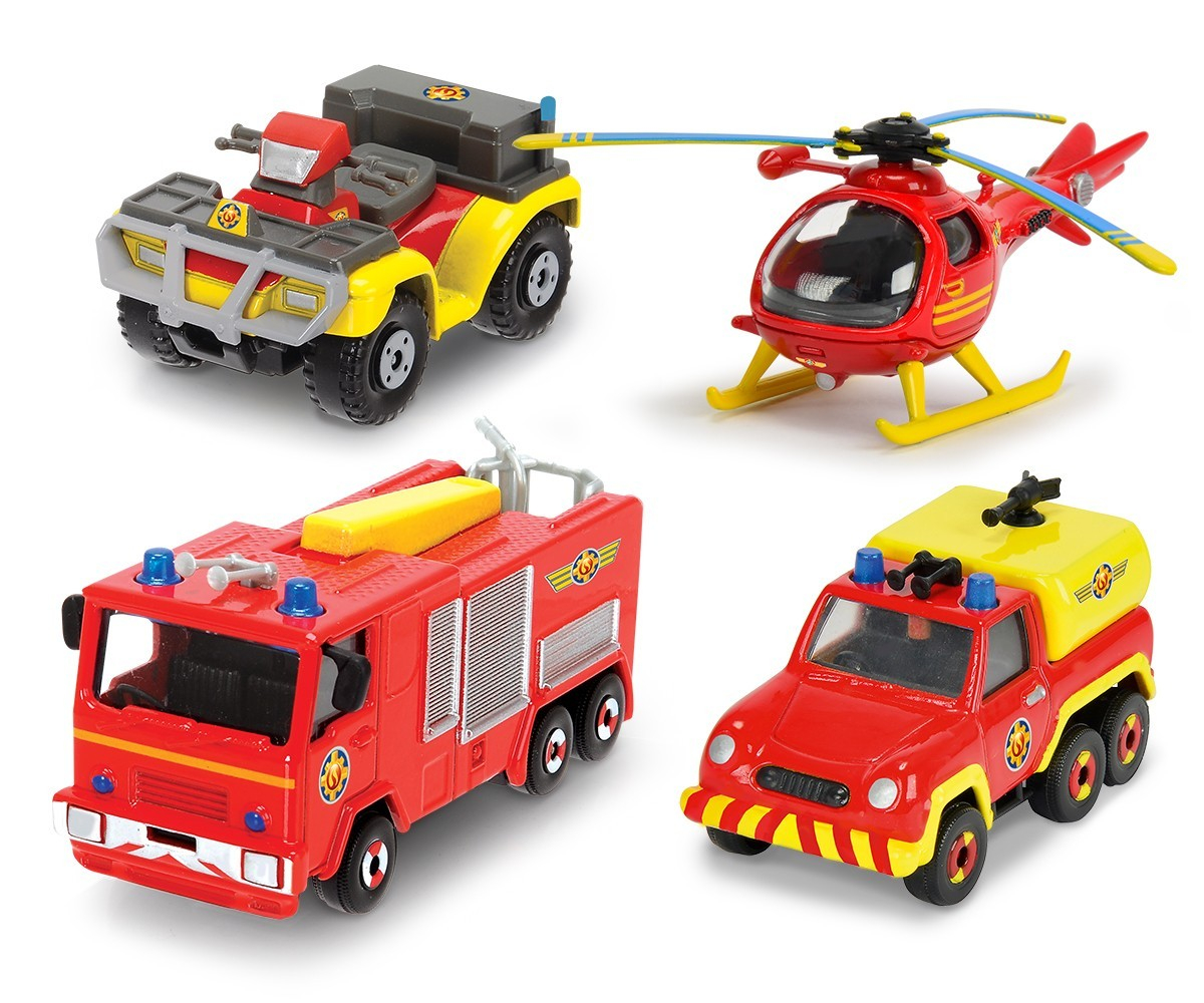 Pompierul Sam alaturi de colegii sai pompieri sar in ajutor atunci cand se intampla ceva si nu se dau inapoi de la nimic! Set 4 vehicule din metal, la scara 1:64 . SetuL contine personajele: Mercury/Wallaby/Jupiter/Venus.