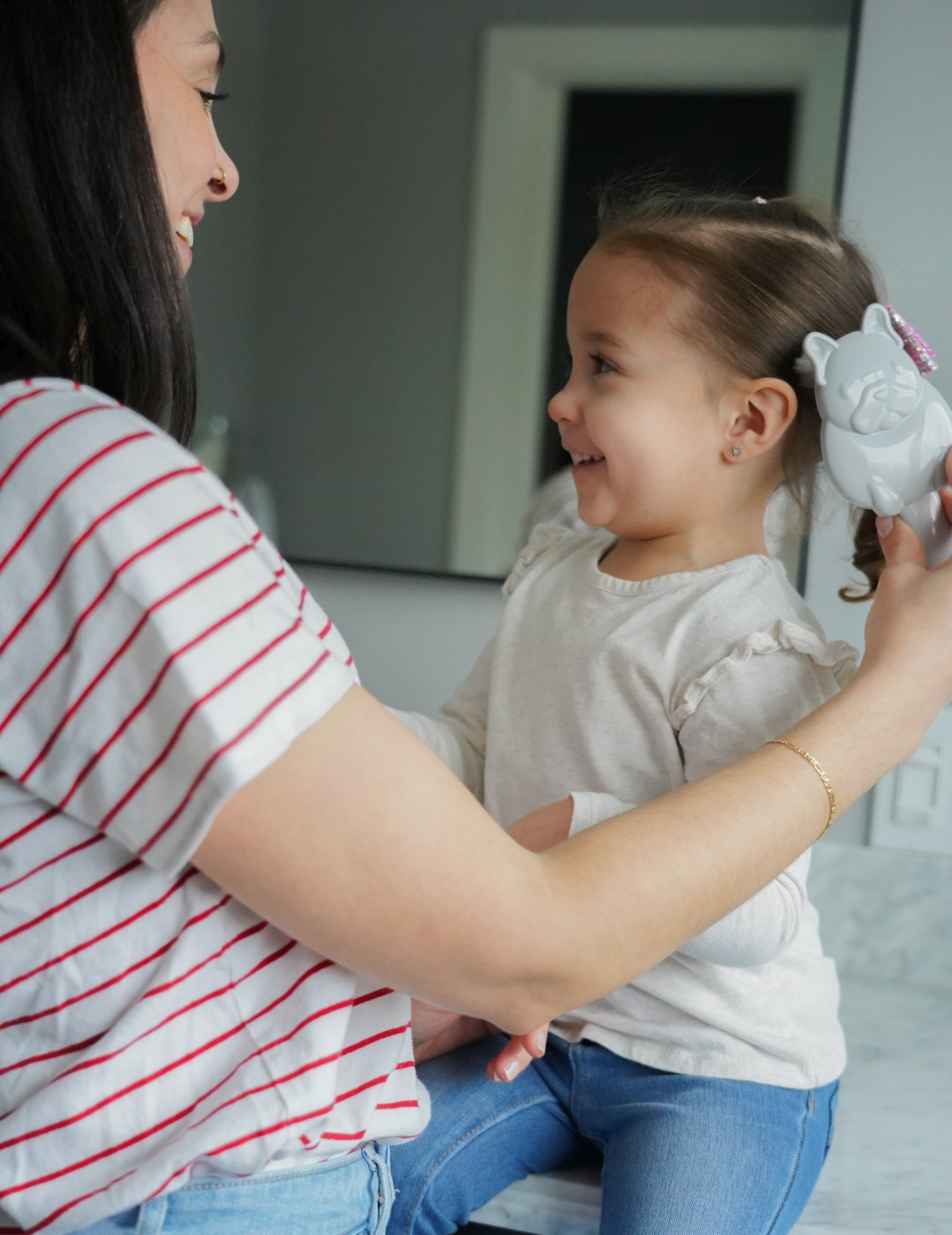 Set Perie si Pieptene pentru Par – Model Bulldog (2 piese) Un set adorabil si practic, ideal pentru ingrijirea zilnica a parului bebelusului tau. Peria moale si pieptenele cu dinti fini sunt special concepute pentru pielea sensibila a bebelusilor, ajutand la indepartarea blanda a impuritatilor si prevenirea incurcaturilor din par. Caracteristici principale: Design jucaus cu model bulldog, care face din fiecare moment de ingrijire o adevarata bucurie pentru copil. Perie cu peri moi, perfecta pentru scalpul sensibil al bebelusilor. Pieptene cu dinti fini, ideal pentru a descurca usor parul si a preveni firele rupte. Materiale sigure, fara BPA, concepute special pentru pielea delicata a copiilor. Recomandat pentru utilizare zilnica. Un accesoriu esential pentru ingrijirea bebelusului, cu un design dragut, care imbina functionalitatea cu place