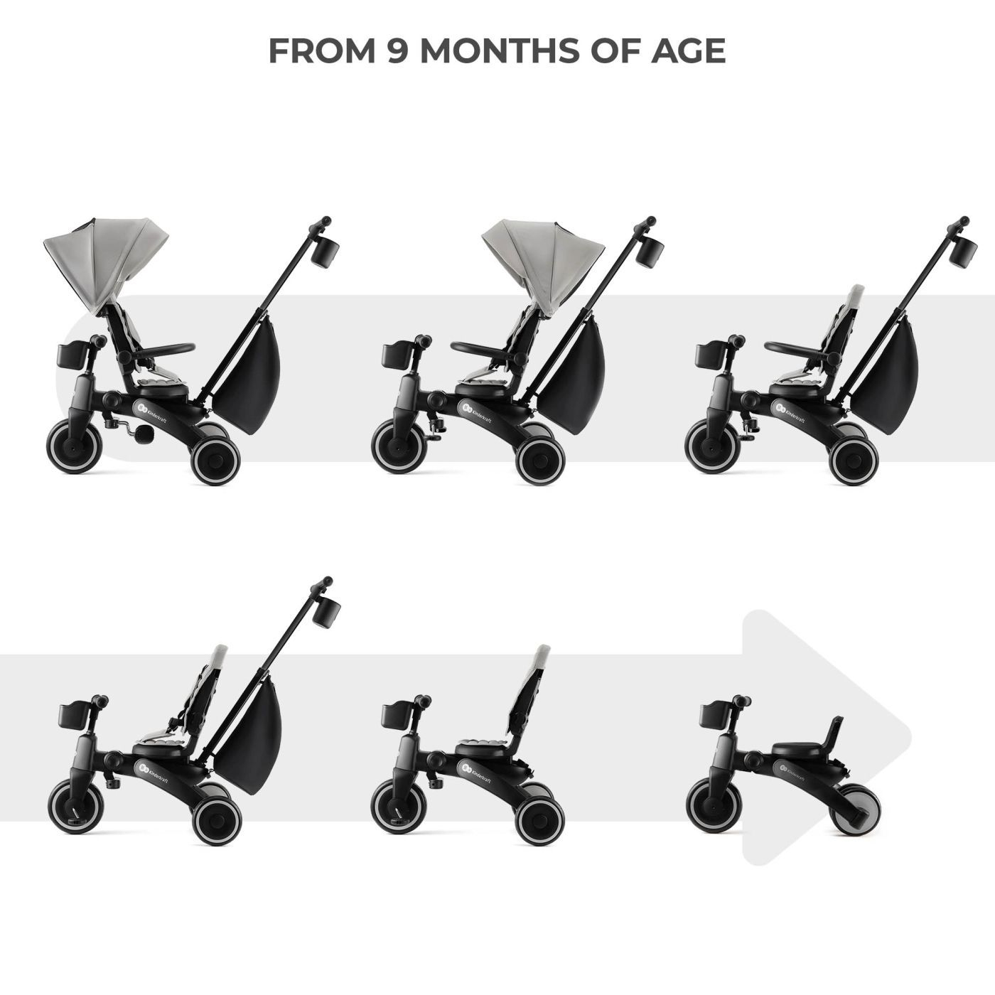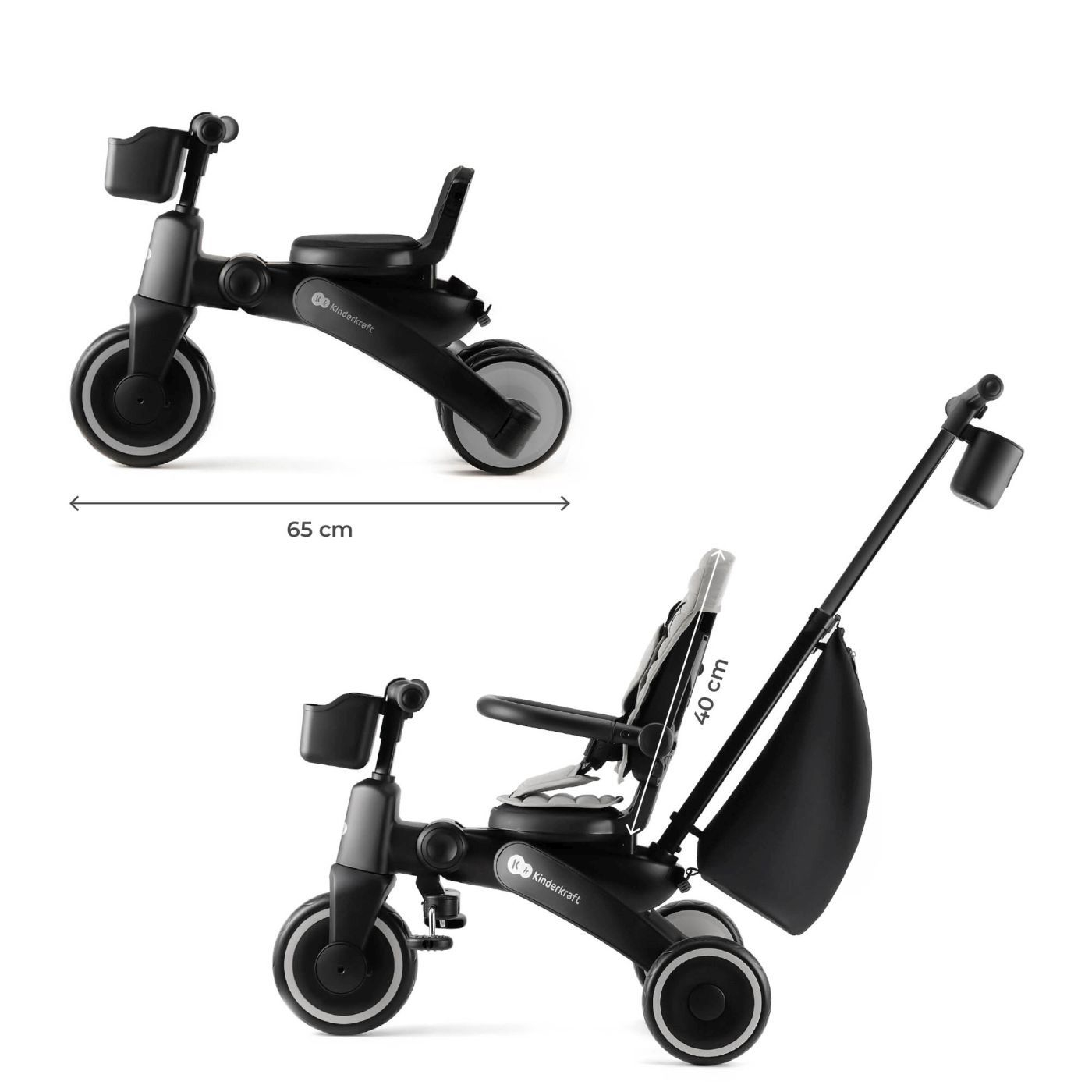 Tricicleta multifunctionala 5 in 1 KINDERKRAFT JAZZ 2, GREY – pentru copii intre 9 luni si 5 ani Va prezentam KINDERKRAFT JAZZ 2 GREY – tricicleta pliabila moderna 5 in 1, proiectata pentru copiii intre 9 luni si 5 ani. Aceasta tricicleta multifunctionala creste impreuna cu copilul tau, adaptandu-se nevoilor sale in fiecare etapa de dezvoltare. 5 moduri de utilizare – o singura tricicleta pentru multi ani KINDERKRAFT JAZZ 2 GREY ofera configuratii diferite, pe care le poti adapta cu usurinta la varsta si abilitatile copilului: Etapa timpurie (9-18 luni): control total al parintelui cu masuri de protectie pentru cei mai mici dintre copii. Etapa de invatare (18-24 luni): copilul incepe sa pedaleze, in timp ce parintele continua sa controleze directia. Etapa de antrenament (2-3 ani): cel mic este mai independent si invata sa pedaleze si sa controleze directia. Etapa de independenta (3-4 ani): copilul merge singur pe tricicleta. Etapa de expert (4-5 ani): transformarea intr-o bicicleta fara pedale pentru cei mai avansati mici biciclisti. Pliere compacta – ideala zi de zi si in calatorii Datorita constructiei bine gandite, KINDERKRAFT JAZZ 2 GREY se poate plia in cateva secunde fara a utiliza unelte. Dupa pliere, bicicleta ocupa putin spatiu, acest lucru facand transportul si depozitarea mai usoare, chiar si in spatiile mici. Dupa pliere pastreaza o pozitie stabila, asa ca o poti depozita atat vertical, cat si orizontal. Scaun pivotant CLICK&TWIST – flexibilitate si confort Scaunul care se roteste la 360° permite asezarea copilului cu fata sau spatele catre directia de mers. Aceasta solutie ii permite celui mic sa se simta in siguranta, permitandu-i contactul vizual cu parintele sau observarea lumii inconjuratoare. În plus, reglarea scaunului se poate face in ambele pozitii, potrivind bicicleta la inaltimea copilului si oferindu-i astfel confort sporit. Reglare pe mai multe niveluri – potrivita pentru nevoi care se schimba rapid KINDERKRAFT JAZZ 2 GREY este dotata cu un maner telescopic pentru parinte, scaun si parasolar reglabile. Aceste functii permit adaptarea perfecta a bicicletei la nevoile copilului si preferintele insotitorului, oferind o utilizare confortabila si ergonomica. Siguranta si control – liniste pentru parinte Tricicleta KINDERKRAFT JAZZ 2 GREY este dotata cu centuri de siguranta in 5 puncte, bariera detasabila si manere antialunecare. Functia de pedalare libera ii permite copilului sa invete sa pedaleze in timp ce parintele are control deplin asupra directie de deplasare. Perfecta pentru orice vreme – protectie tot anul Copertina impermeabila cu filtru UPF50+ il protejeaza pe copil de soare si ploile usoare. Unghiul de inclinare se poate regla pentru a asigura protectia optima in diferite conditii de vreme. În plus, fereastra incorporata permite observarea discreta a celui mic in timpul plimbarii. Prin alegerea tricicletei KINDERKRAFT JAZZ 2 GREY, investesti intr-o bicicleta multifunctionala, care se adapteaza la nevoile copilului tau, asigurandu-i protectia, confortul si bucuria de a descoperi lumea in fiecare etapa de dezvoltare. KINDERKRAFT JAZZ 2 GREY – Tricicleta pliabila 5 in 1 pentru copii de la 9 luni la 5 ani ✔ Creste impreuna cu copilul – cele 5 moduri de utilizare permit adaptarea bicicletei la varsta si abilitatile copilului, de la primele plimbari la mersul independent. ✔ Pliere compacta – sistemul de pliere rapida permite plierea bicicletei in cateva secunde fara a folosi unelte, facand mai usoare transportul si depozitarea, chiar si in spatii mici. ✔ Scaun pivotant 360° – datorita functiei CLICK&TWIST copilul poate calatori cu fata sau spatele catre directia de mers, bucurandu-se de sentimentul de siguranta si mai mult confort. ✔ Siguranta si control deplin – centurile in 5 puncte, bariera detasabila si functia de pedalare libera ii permit copilului sa invete sa pedaleze in timp de parintele controleaza directia de deplasare. ✔ Confort in orice conditii – copertina impermeabila cu UPF50+, manerul pliabil pentru parinte si rotile amortizate EVA asigura atat confortul copilului, cat si al insotitorului. Specificatii: Materialul cadrului: plastic Materialul rotilor: EVA Dimensiuni: Înaltimea bicicletei depliate pana la manerul parintelui: 92-100 cm Înaltimea bicicletei depliate pana la copertina: 70 cm Lungimea bicicletei depliate cu maner: 125 cm Lungimea bicicletei depliate fara maner: 93,5 cm Latimea bicicletei depliate: 52,5 cm Adancimea scaunului: 19 cm Latimea scaunului: 20 cm Latimea spatarului: 22 cm Lungimea spatarului: 40 cm Distanta de la sol la maner: 48,5-51,5 cm Diametrul rotilor din fata: 20 cm Diametrul rotilor din spate: 17 cm Distanta dintre rotile din spate: 52,5 cm Înaltimea bicicletei pliate fara maner, cu copertina: 78 cm Înaltimea bicicletei pliate fara maner, fara copertina: 65 cm Latimea bicicletei pliate fara maner: 34 cm Lungimea bicicletei pliate fara maner: 34 cm