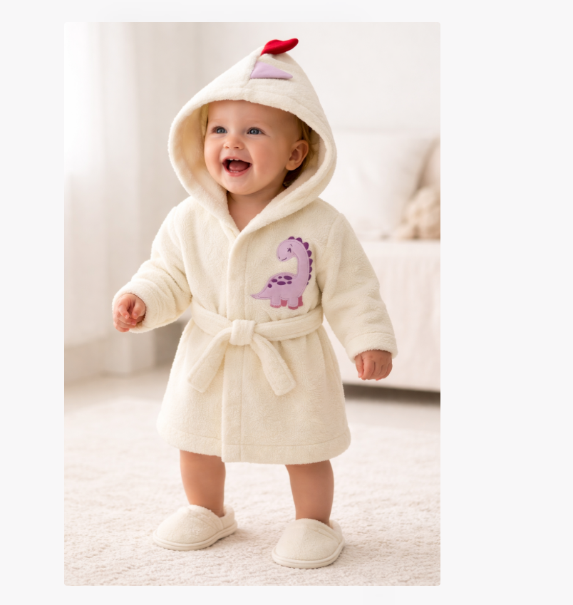 Halat de baie, cu gluga si papucei, Capison animalut, Alb Lila
