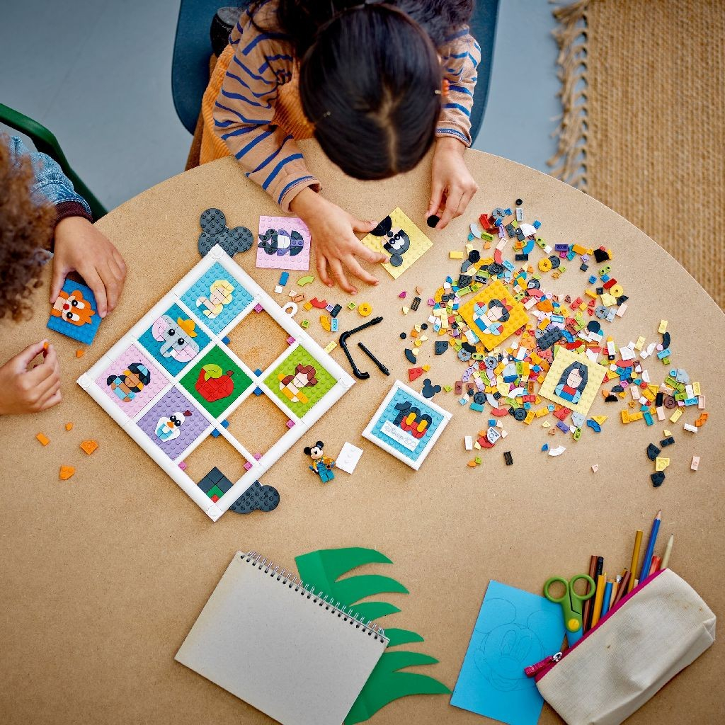 Captiveaza fanii si copiii de la 6 ani in sus si inspira o sesiune de decorare creativa Disney cu setul LEGO® ǀ Disney 100 de ani de animatii Disney (43221). Setul contine 12 placi 8x8, o rama de fotografie si elemente de agatat si o multime de placute pentru a construi pana la 12 imagini, plus o minigurina Mickey Mouse exclusiva si instructiuni de construit care ofera si mai multa inspiratie. În timp ce construiesc, copiii se pot bucura de o aventura usoara si intuitiva cu aplicatia LEGO Builder. Aici pot mari si roti modelele in 3D, sa salveze seturi si sa-si urmareasca progresul. Aceasta decoratiune Disney de perete ajuta la dezvoltarea creativitatii si originalitatii copiilor in timp ce creeaza si etaleaza personajele preferate in format de imagine. Este grozav si pentru joaca in grup si poate fi combinat si cu alte seturi LEGO ǀ Disney similare (vandute separat) pentru a mari expozitia de arta. Acest kit premium este plin de posibilitati si este un cadou grozav de care va vorbi toata lumea. Ofera unui fan sau oricarui copil de 6+ ani care adora creatiile Disney un cadou care ii inspira imaginatia cu acest set LEGO® ǀ Disney 100 de ani de animatii Disney (43221). Setul contine 12 placi 8x8, elemente de inramare, o multime de placute pentru a crea intreaga colectie deodata si o mica carte cu instructiuni si 72 de modele Disney organizate in 6 colectii a cate 12. Kitul include minifigurina Mickey Mouse cu pieptul si picioarele decorate exclusiv pentru acest set, care tine in mana o pensula si o paleta de culori. Daruieste acest set de arta de perete premium drept cadou copiilor, familiei sau prietenilor cu o pasiune pentru personaje Disney, arta si design. Colajul inramat impreuna cu agatatoarea masoara peste 28 cm inaltime si 32 cm latime. Imaginile pot fi schimbate cu usurinta pe acest suport distractiv de perete, fiind usor sa creezi un ansamblu nou oricand vrei. Lasa aplicatia LEGO® Builder sa-i ghideze pe copii intr-o aventura intuitiva. Aici pot salva seturi, sa-si monitorizeze progresul si sa mareasca si roteasca modelele in 3D in timp ce construiesc. Cu 72 de modele de imagini incluse in ghid, acest kit Disney de construit incurajeaza joaca creativa si ajuta la dezvoltarea abilitatilor esentiale de viata in mod distractiv. Înca din 1958, componentele LEGO® au intrunit standardele stricte ale industriei pentru a asigura ca acestea se conecteaza consistent. Componentele LEGO® sunt aruncate, incalzite, strivite, rasucite si analizate pentru a garanta ca acestea se conformeaza standardelor globale stricte de siguranta.