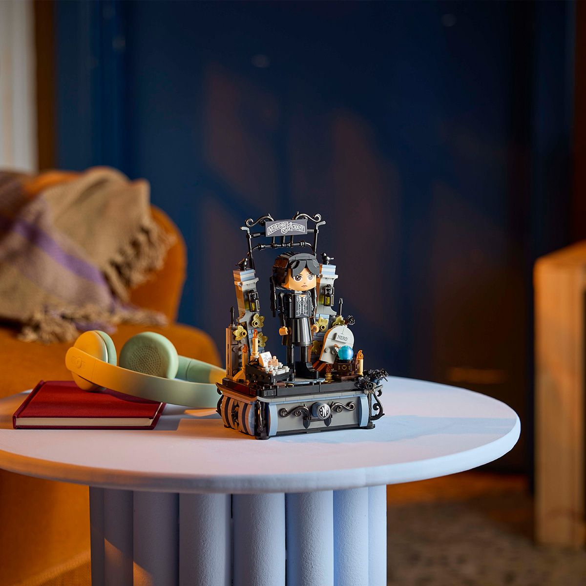 Mistere si haos ii asteapta pe copiii de 10 ani si mai mari in setul Figurina Wednesday Addams (76780). Acest set cadou LEGO Wednesday include un model de colectie, articulat, cu cap, brate si picioare mobile, plus 2 fete si 2 tinute, astfel incat figurina sa poata fi reconstruita. Setul il include pe partenerul loial Thing al lui Wednesday, un stand cu dalii negre si 2 spatii ascunse pentru a pastra comori, cum ar fi rochia Rave'N Dance sau uniforma personajului. In set se afla si poarta Academiei Nevermore si accesoriile lui Wednesday, intre care masina de scris, mormantul lui Nero, un glob de cristal si multe altele. Descopera alte seturi LEGO Wednesday Addams (vandute separat) pentru mai multe optiuni de joaca. Acest model este si un cadou cool de zi de nastere pentru copii.