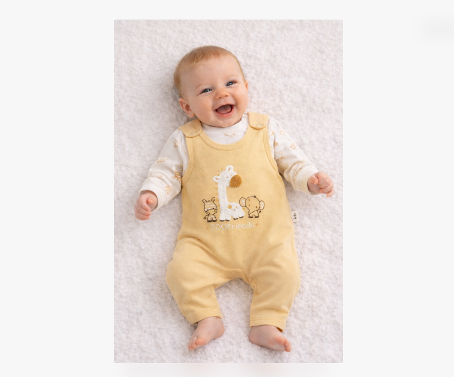 Oferă-i micuțului tău confortul perfect cu această salopetă adorabilă pentru bebeluși, realizată din bumbac fin și delicat cu pielea sensibilă. Modelul galben cald, decorat cu broderii simpatice inspirate din lumea animalelor „Zoo Friends”, transformă fiecare moment într-unul plin de zâmbete.