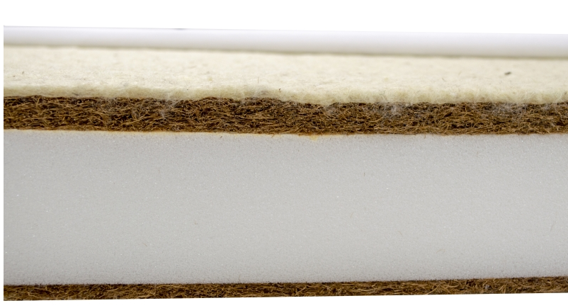 – aceasta saltea este confectionata din 2 straturi de fibra de nuca de cocos, un strat de burete la mijloc si un strat de lana merinos